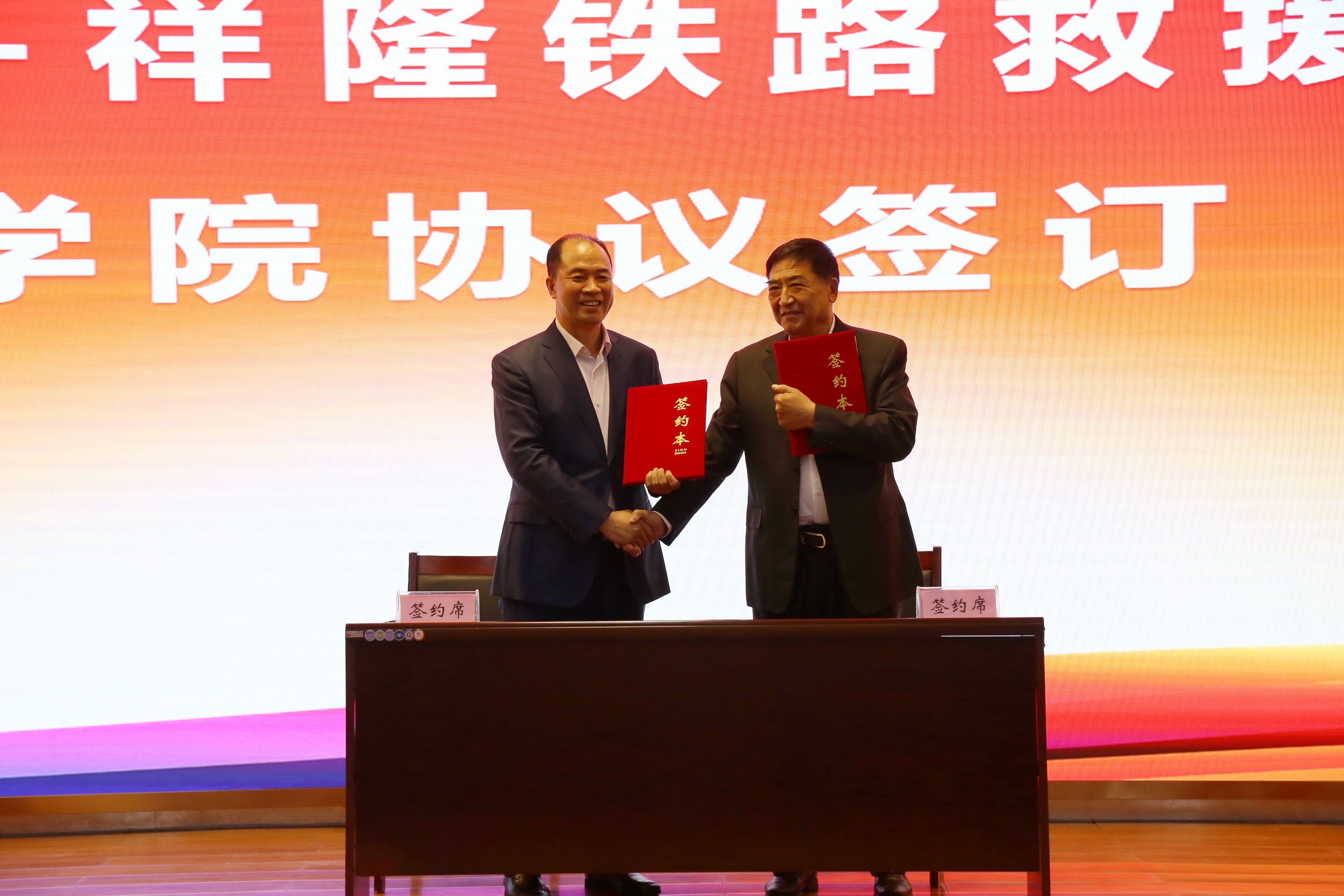 随后,进行了吉铁院-祥隆铁路救援产业学院捐赠协议签约,本次签约是吉铁院与吉林市祥隆铁路救援公司校企深度融合的成果,今后,双方将共建产业学院、协同创新中心,企业深度融入我校铁道机车专业人才培养全过程,在专业建设、课程建设、职工培训、科研创新、双师队伍和实训基地建设等方面共建共享。