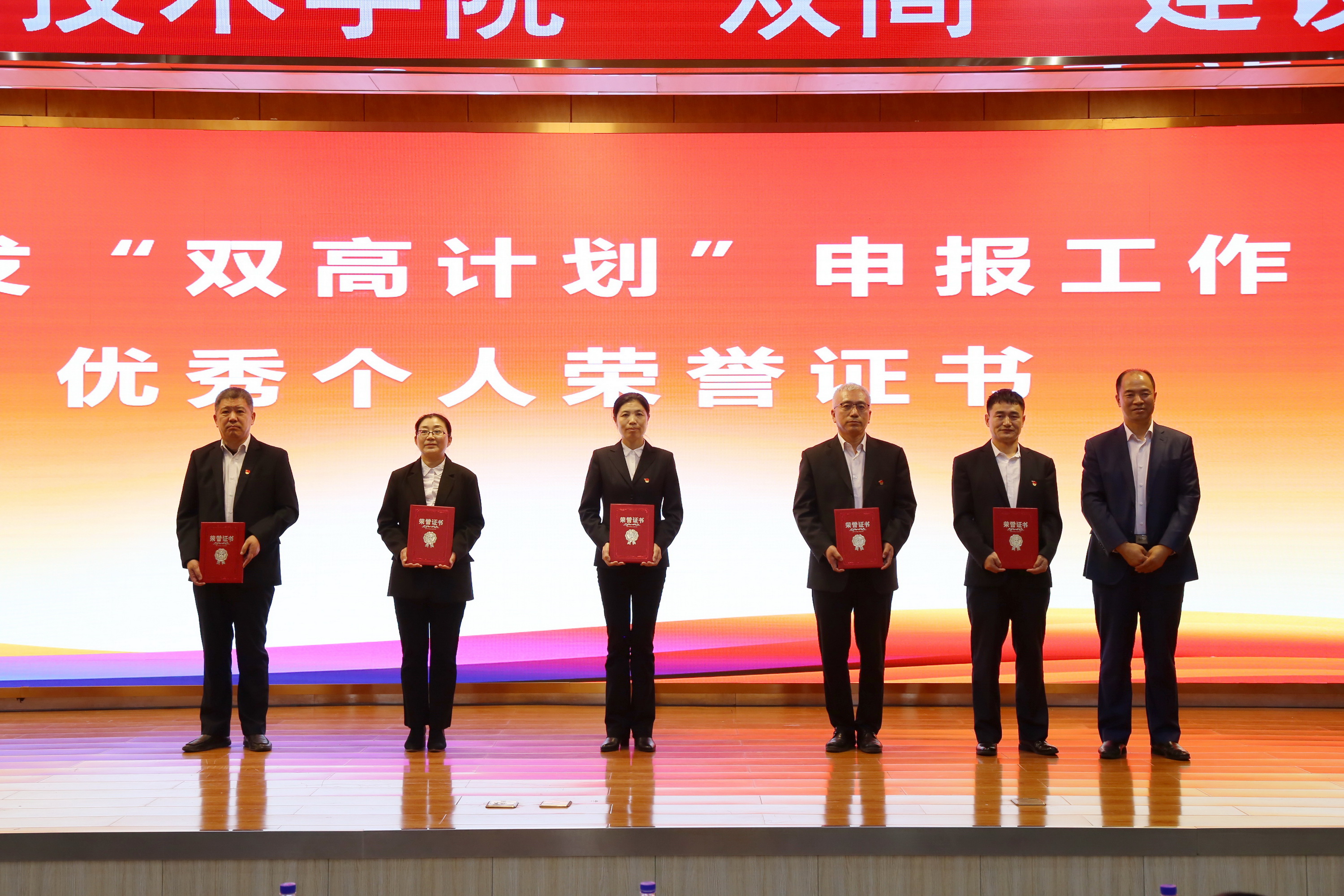 接下来进行大会第二阶段,组织人事部部长马卫强宣读了《学校关于表彰“双高计划”申报工作优秀个人的决定》,质量监控处处长郝延春宣读了《学校关于成立“双高330行动”专班的决定》。学校领导为获得表彰的先进个人颁发证书,