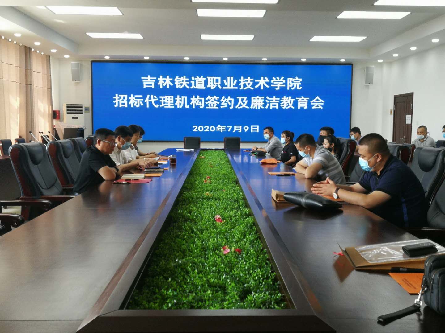 为进一步加强学校党风廉政建设工作,有效推进对委托招标工作的全面监督,确保学校招投标工作规范有序进行。7月9日上午9时,学校纪委和资产采购中心组织召开了学校2020年招标代理机构签约及廉洁教育会议。副校长田雷同志、纪委书记苏春年同志、纪委副书记侯占峰同志、资产管理中心主任林红东同志、各招标代理机构入围单位法定代表人参加了会议。会议由副校长田雷主持。