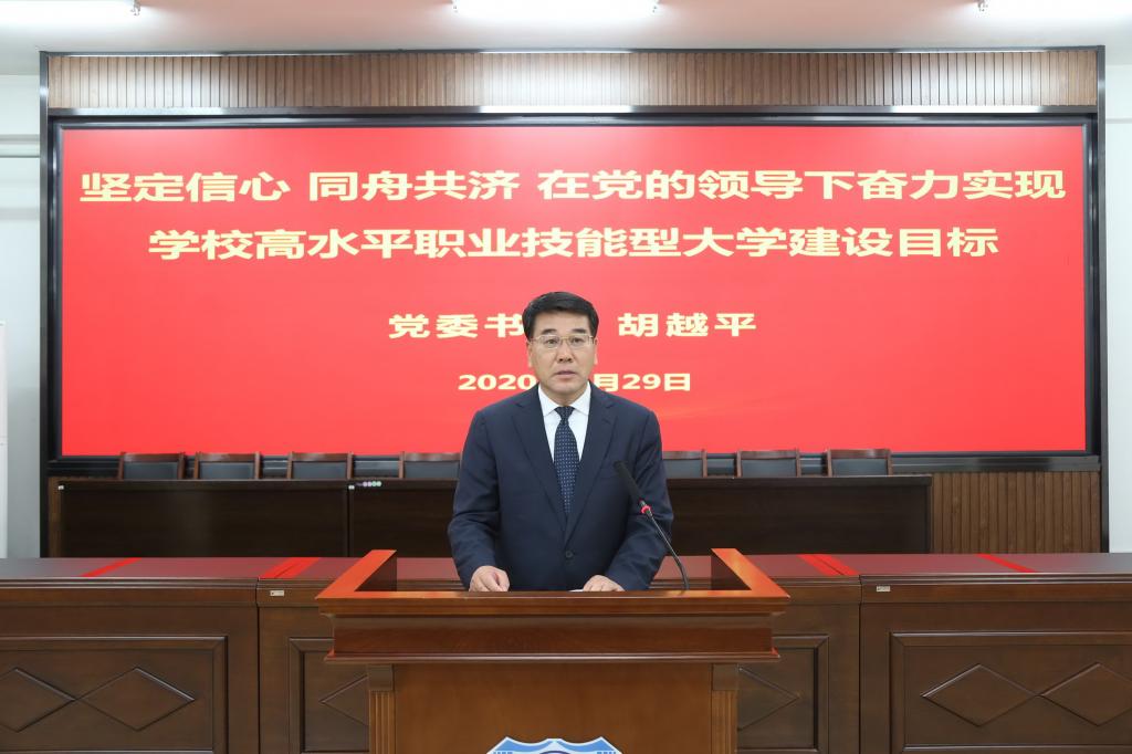 胡越平在讲话中指出,这次会议期间,各代表团及各位代表以高度的使命感和责任感,认真履行职责,共商发展大计,彰显了心系发展大局、情系跨越发展的良好形象。校长曹炳志所作的学校工作报告总结去年成绩,正视存在问题,提出今年提质量、补短板的十三项重点任务,是一个有思路有举措有担当的报告。胡越平提到,2020年对我们党和国家及每个人而言,注定是不平凡的一年,是机遇与考验并存的一年,是需要我们用新的智慧和行动去拼搏进取并最终取得成功的一年,做好今年的工作,意义十分重大。为了更好地统一思想,凝聚共识,抓好工作,他强调五点意见,一是强化政治引领,坚决打赢防疫战。要坚持把疫情防控作为当前最大的政治任务,充分发挥党委的领导核心作用,基层党组织的战斗堡垒和广大党员的先锋模范作用,切实做到思想认识到位、贯彻执行到位、组织领导到位、管理服务到位、宣传引导到位、责任落实到位,抓紧抓实抓细常态化疫情防控工作和学生返校复课各环节工作,守住校园这片净土,确保师生生命安全;二是强化思想引领,立德树人担使命。全校上下要统一思想狠抓落实,在形势任务上统一思想,在方式方法上统一思想,在动力合力上统一思想;三是强化组织引领,履职尽责有作为。要以这次会议为契机,真正做到问计于教职工、问策于教职工,办实事、解难题;四是强化目标引领,抢抓机遇促发展。全校上下要聚焦目标狠抓落实,要自觉将个人的成长与学校的发展紧密结合起来,要主动将目标任务转化为加快“双高计划”建设的核心动力,要把吉铁院人务实肯干的政治品格转化为干事创业、推动学校发展的不竭动力,脚踏实地、真抓实干、砥砺前行,奋力实现“当地离不开,业内都认同,国际可交流”的引领改革、支撑发展、中国特色、世界水平的高职院校宏伟目标;五是强化作风引领,不忘初心做表率。要持续巩固和拓展主题教育成果,把思想政治工作强大的教育功能转化为群策群力的制胜法宝,有效提振干事创业士气。胡越平在最后指出,全校教职工要以新的风貌迎接挑战、以新的举措破解难题、以新的思路谋求发展,为全面完成“十三五”收官,开启“十四五”新征程,深入建设国内一流、国际知名的特色高水平职业技能型大学,贡献我们全部的力量!