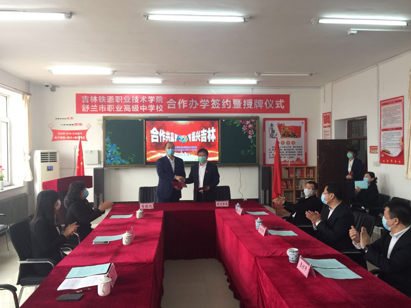 4月16日,学校校长曹炳志,副校长张辉,教务处处长王学明、乡村发展学院党总支书记杨秀、院长周云凌等7人赴舒兰职业高级中学,参加吉林铁道职业技术学院乡村发展学院舒兰分院签约暨授牌仪式。