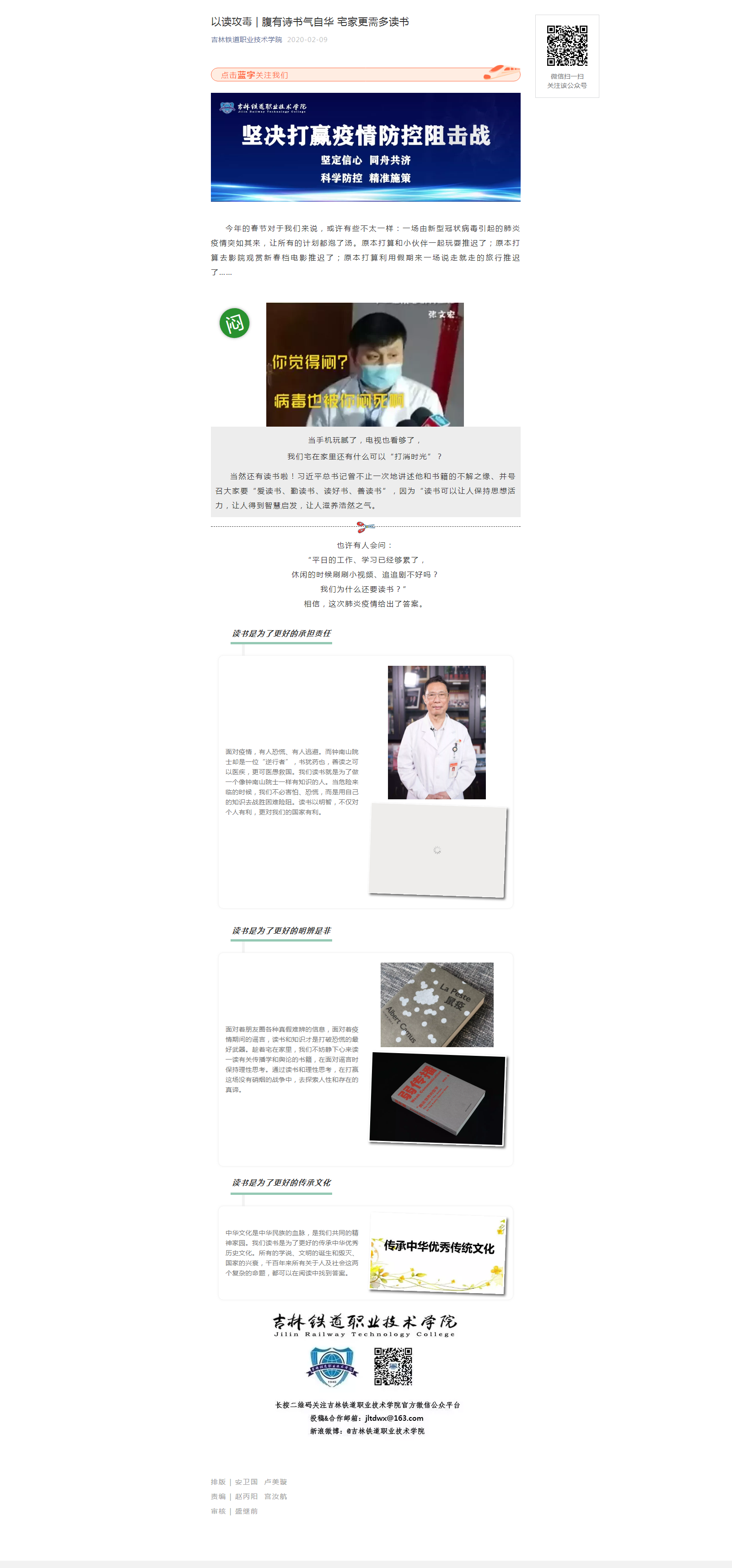 【抗击新冠肺炎 吉铁院在行动】以读攻毒 | 腹有诗书气自华 宅家更需多读书