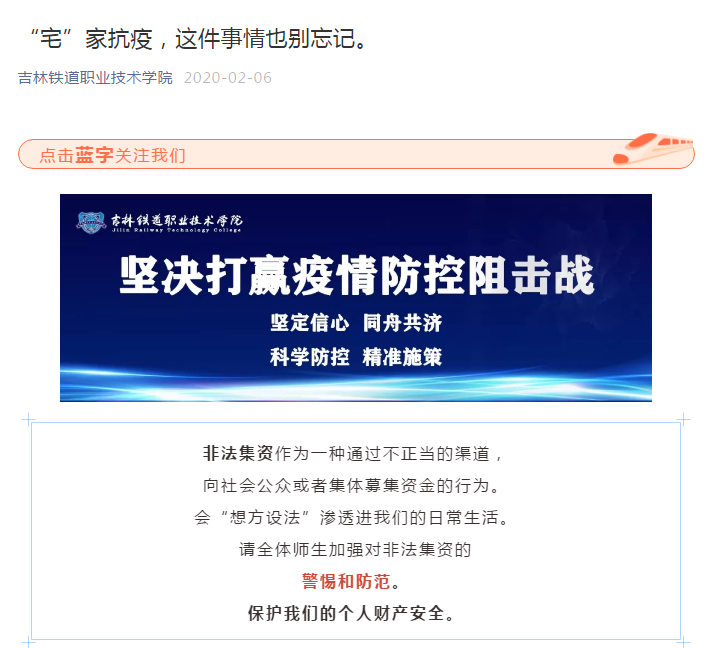【抗击新冠肺炎 吉铁院在行动】学校开展2020年春节期间防范非法集资宣传教育
