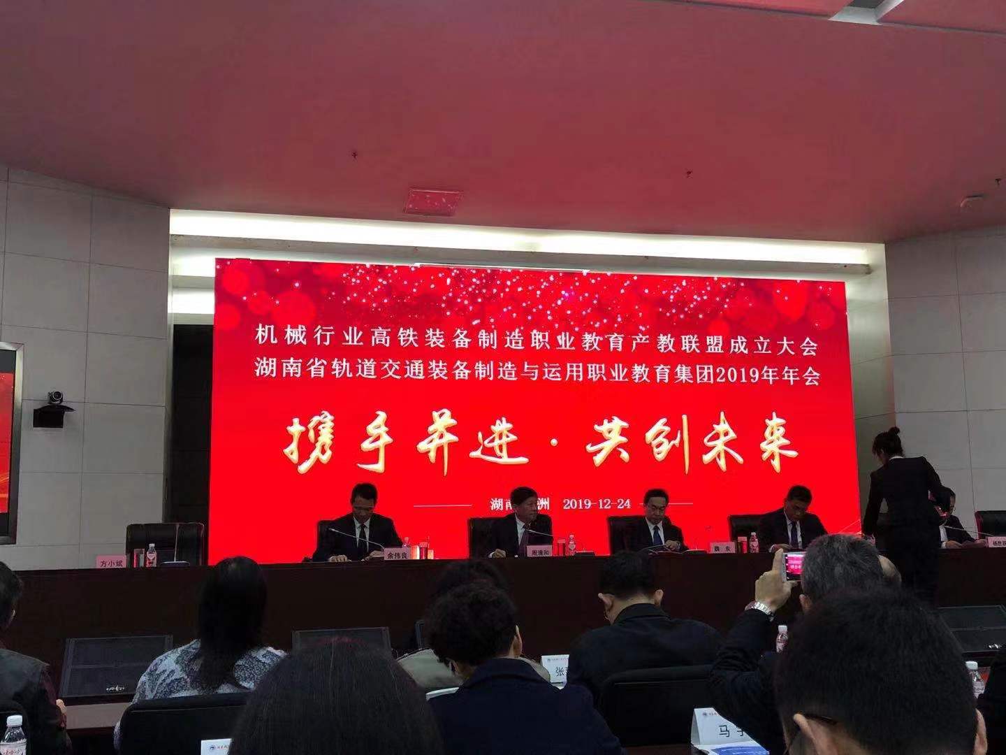 12月24日,全国机械行业高铁装备制造职业教育产教联盟成立大会在湖南株洲举行。作为业内首个全国性联盟,汇集了“中国中车”等众多龙头企业及院校。联盟实行理事会制度,首届理事长单位包括中车株洲电力机车有限公司、中车长春轨道客车股份有限公司等5家,副理事长单位24家,理事单位70家,我校是联盟创始成员单位及首批副理事长单位之一。