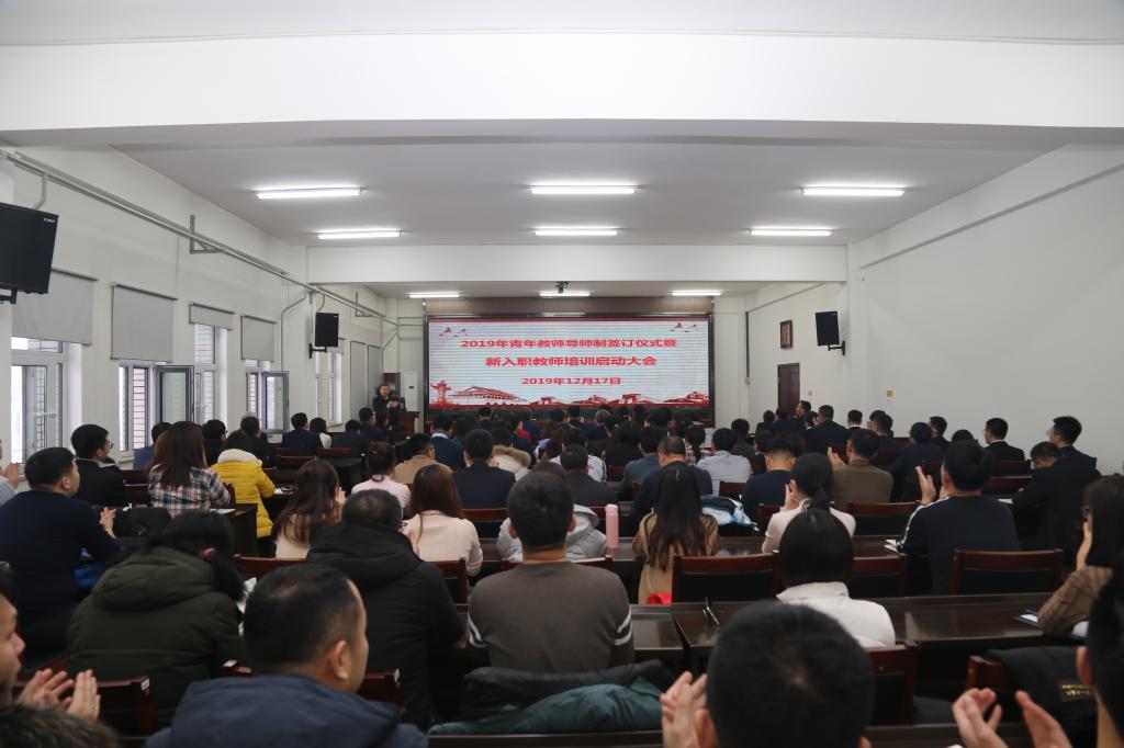 12月17日,学校2019年青年教师导师制签订仪式暨新入职教师培训启动大会在行政楼五楼会议室隆重举行。党委书记胡越平、党委副书记徐彤宝、纪委书记苏春年、副校长李欣、副校长张辉等校领导出席会议。有关部门负责人、各学院党总支书记、院长和副院长参加了大会。新教师在会上进行了入职宣誓和“青年教师导师制”签约仪式。会议由徐彤宝主持。