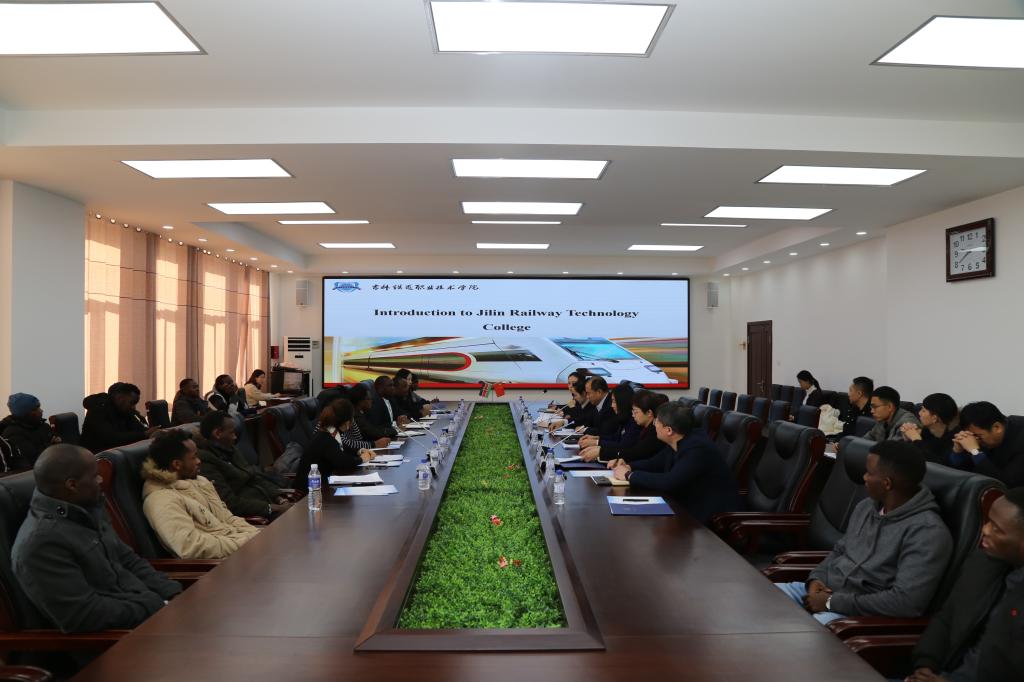 会上,肯尼亚铁路局Masibo女士感谢我校对肯尼亚留学生培养的高度重视,感谢学校对留学生学习生活上的关心支持,并欢迎吉铁院的领导和教师到肯尼亚参观交流。她表示,当前肯尼亚铁路专业人才紧缺,希望肯尼亚留学生在吉铁院真正掌握中国标准、中国技术、中国装备,达到毕业要求,回国后为肯尼亚铁路事业、为“一带一路”倡议做出贡献。工程师James表示,吉林铁道职业技术学院是一所高水平院校,拥有优秀的教学团队和系统完善的教学设备。学校培养肯尼亚留学生就是对肯尼亚国家铁路局的支持,由于肯尼亚地处非洲铁路交通枢纽位置,也是对非洲铁路的支持和帮助。肯方建议,针对肯尼亚留学生回国后,学校能够派出专业教师团队,来到肯尼亚,在工作岗位上进行指导。