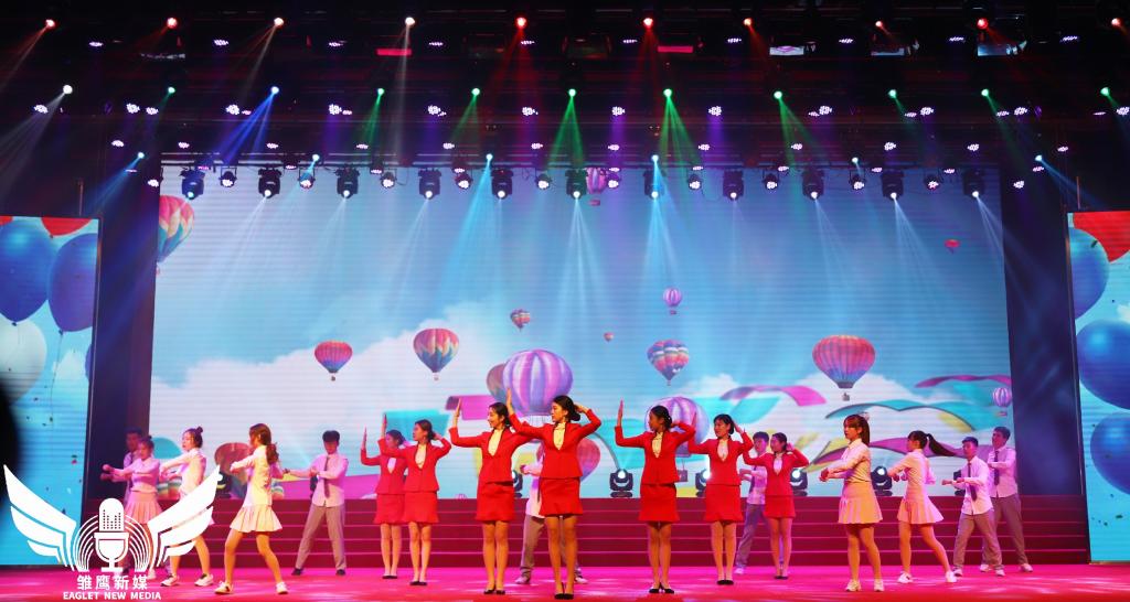 光影变幻的舞台上,声乐高昂,舞姿绚烂。每一位演出人员都热情投入,力求用完美的表演表达师生浓浓的爱国之情。音乐诗画《我为您庆生》饱含深情,祖国山河的滚滚波涛、辽阔田野,红旗招展的沧桑巨变、魅力风光在眼前一一浮现。由全体2019级新生辅导员共同演唱的《我们的新时代》,余音不绝,催人奋进,演绎了当代青年学工教师激情满怀、斗志昂扬的良好风貌。歌曲串烧《我和2035有个约》、《我们都是追梦人》、街舞《我的未来不是梦》、情景舞蹈《大梦想家》,彰显了当代青年大学生在新时代浪潮中放飞梦想、朝气蓬勃的青春力量。一首《世界向东看》,表达了全校师生对祖国的无限热爱和美好祝愿。
