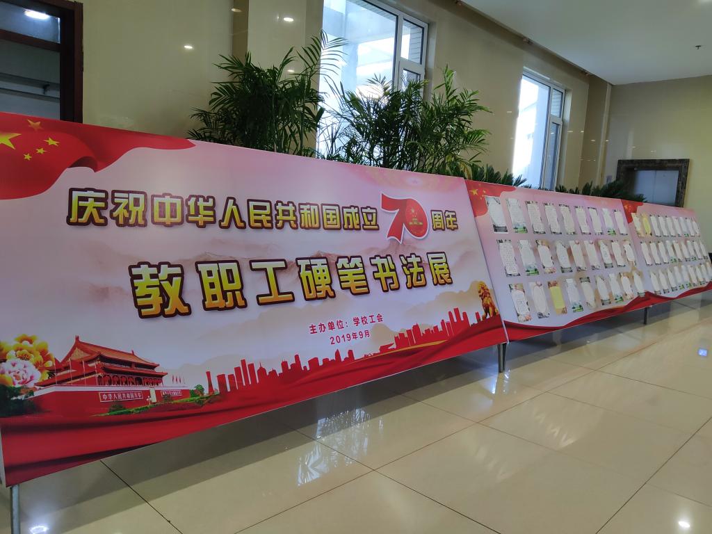 致敬祖国,歌颂祖国。为了热烈庆祝中华人民共和国成立70周年,表达我校教工对伟大祖国母亲的美好祝愿,在国庆节来临之际,学校工会举行了庆祝中华人民共和国成立70周年教工硬笔书法展,全体教工以饱满的热情参加了这次活动。