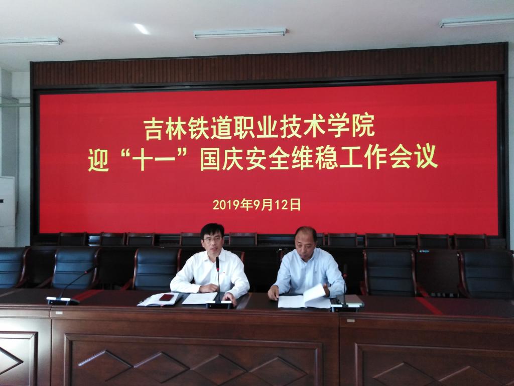 为贯彻落实9月9日省教育厅召开的全省校园安全稳定会议精神,全面做好校园安全工作,确保我校“十.一”国庆期间安全稳定,喜迎建国70周年,9月12日上午,学校在办公楼第三会议室召开迎“十.一”国庆安全维稳工作会议。副校长田雷、全校各部门负责人参加了会议,会议由田雷主持。