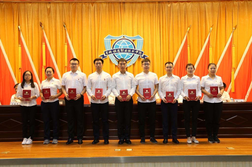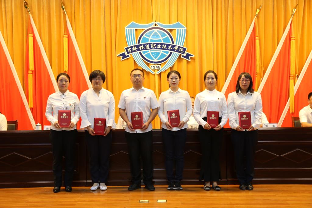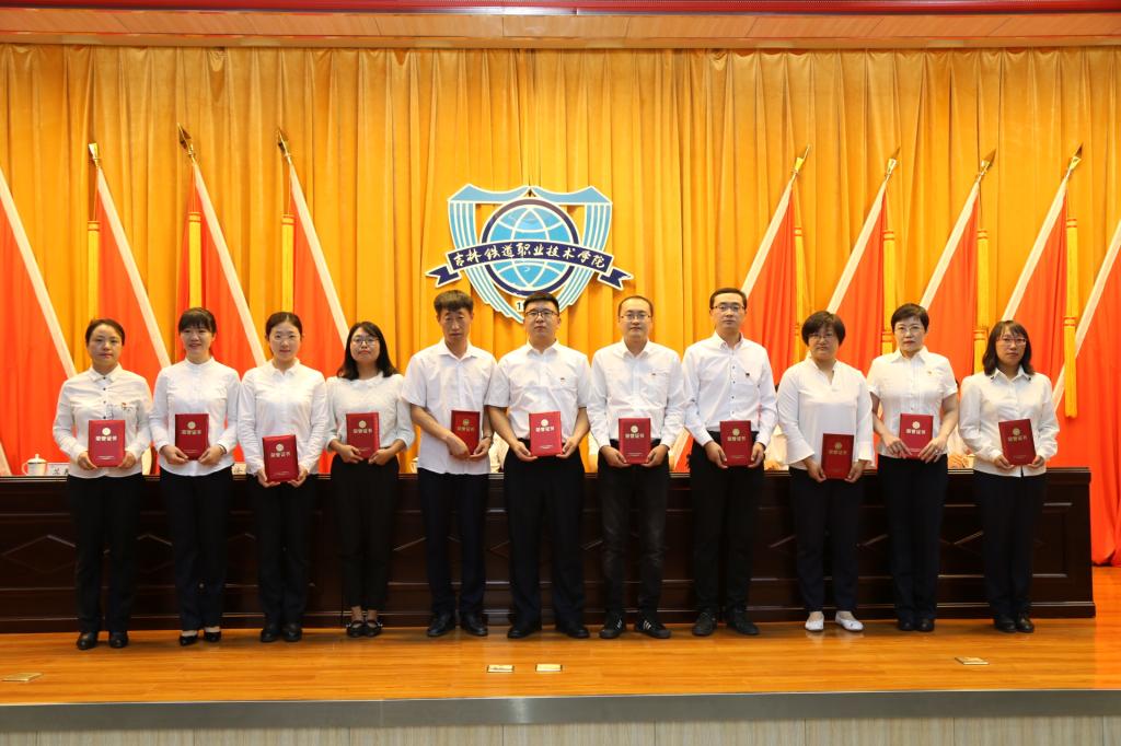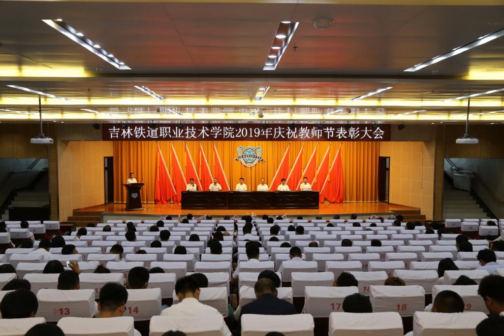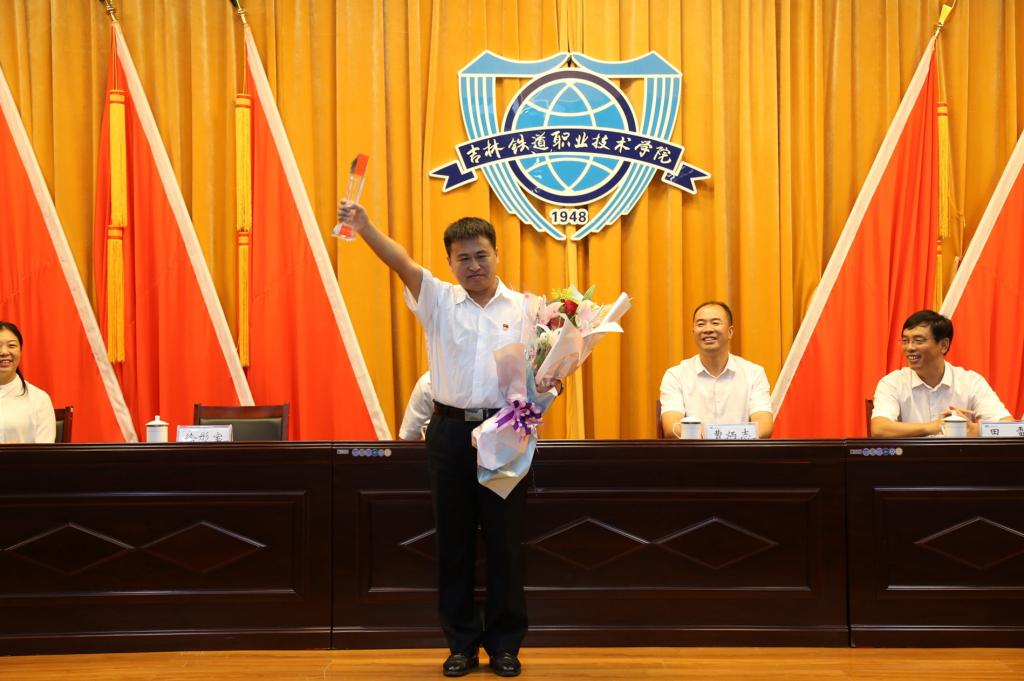 会上,曹炳志发表讲话。田雷介绍了我校获得吉林省“2019吉林好人·最美教师暨黄大年式好老师”荣誉称号的莫建国同志的先进事迹,宣读了从教30周年教师、教育工作者名单;苏春年宣读了学校2018—2019学年“三全育人”先进个人表彰名单和2018-2019学年“四有好老师”表彰名单;李欣宣读了2018年度学校“优秀专业带头人”和“骨干教师”表彰名单,学校2018-2019学年 “课堂教学质量奖”表彰名单,学校2019年度“最美教师暨黄大年式好老师(教学团队)”表彰名单,学校教学能力大赛获奖人员名单。伴随着欢快喜庆的乐曲和全场师生热烈的掌声,学校领导为获奖单位和教师代表颁奖。教师代表、城市轨道交通学院刘秀丹老师,学生代表铁道信号学院孙宏伟同学分别发言。