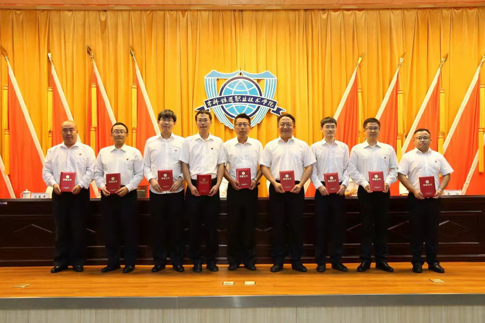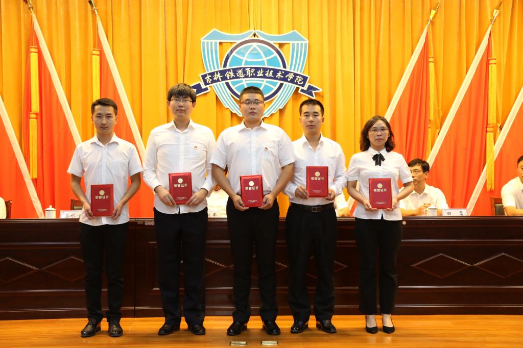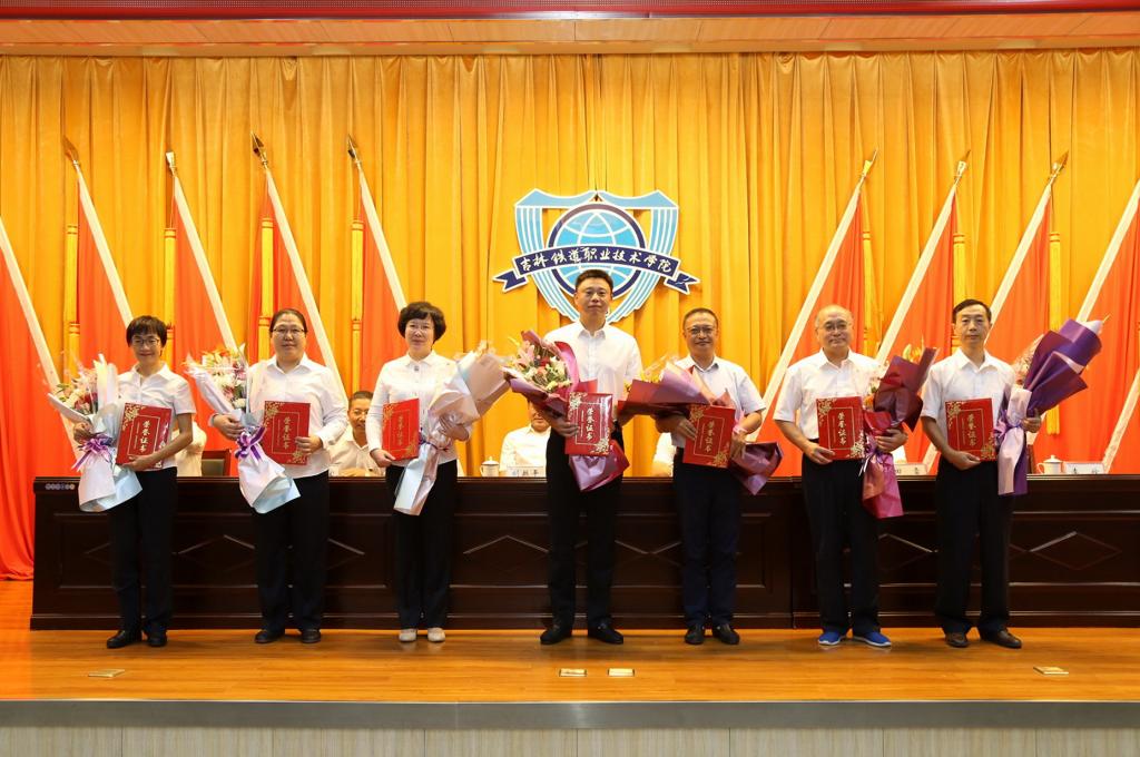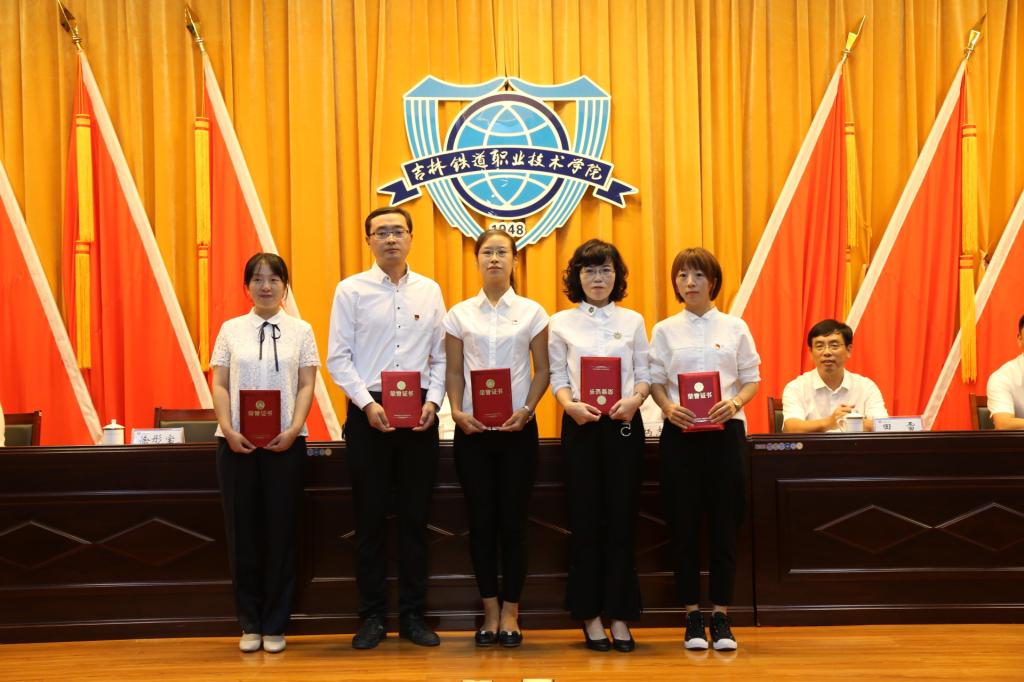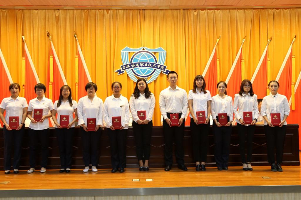 会上,曹炳志发表讲话。田雷介绍了我校获得吉林省“2019吉林好人·最美教师暨黄大年式好老师”荣誉称号的莫建国同志的先进事迹,宣读了从教30周年教师、教育工作者名单;苏春年宣读了学校2018—2019学年“三全育人”先进个人表彰名单和2018-2019学年“四有好老师”表彰名单;李欣宣读了2018年度学校“优秀专业带头人”和“骨干教师”表彰名单,学校2018-2019学年 “课堂教学质量奖”表彰名单,学校2019年度“最美教师暨黄大年式好老师(教学团队)”表彰名单,学校教学能力大赛获奖人员名单。伴随着欢快喜庆的乐曲和全场师生热烈的掌声,学校领导为获奖单位和教师代表颁奖。教师代表、城市轨道交通学院刘秀丹老师,学生代表铁道信号学院孙宏伟同学分别发言。