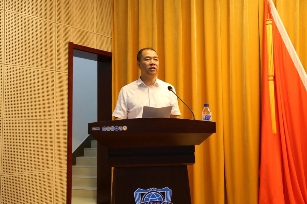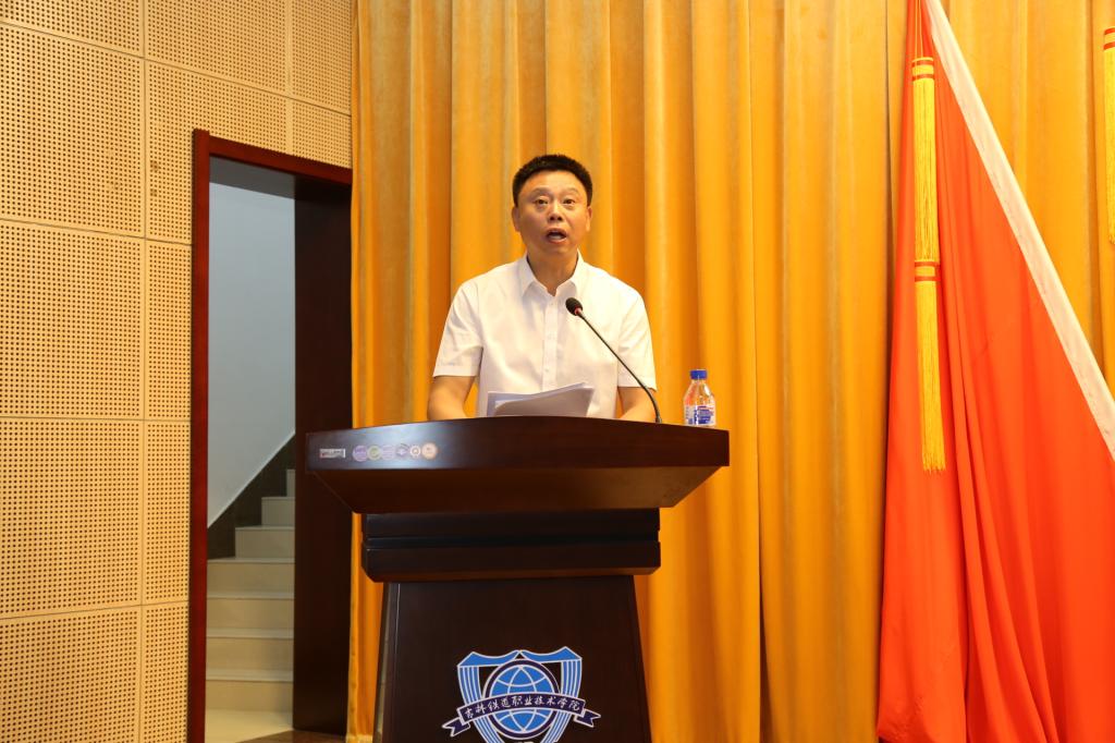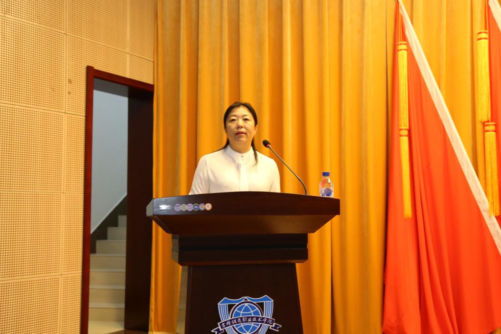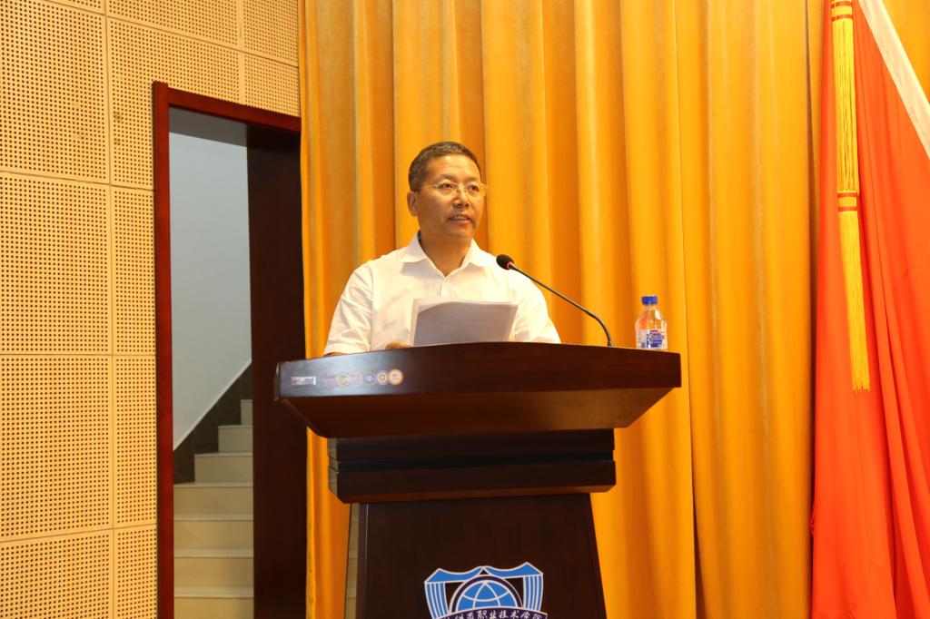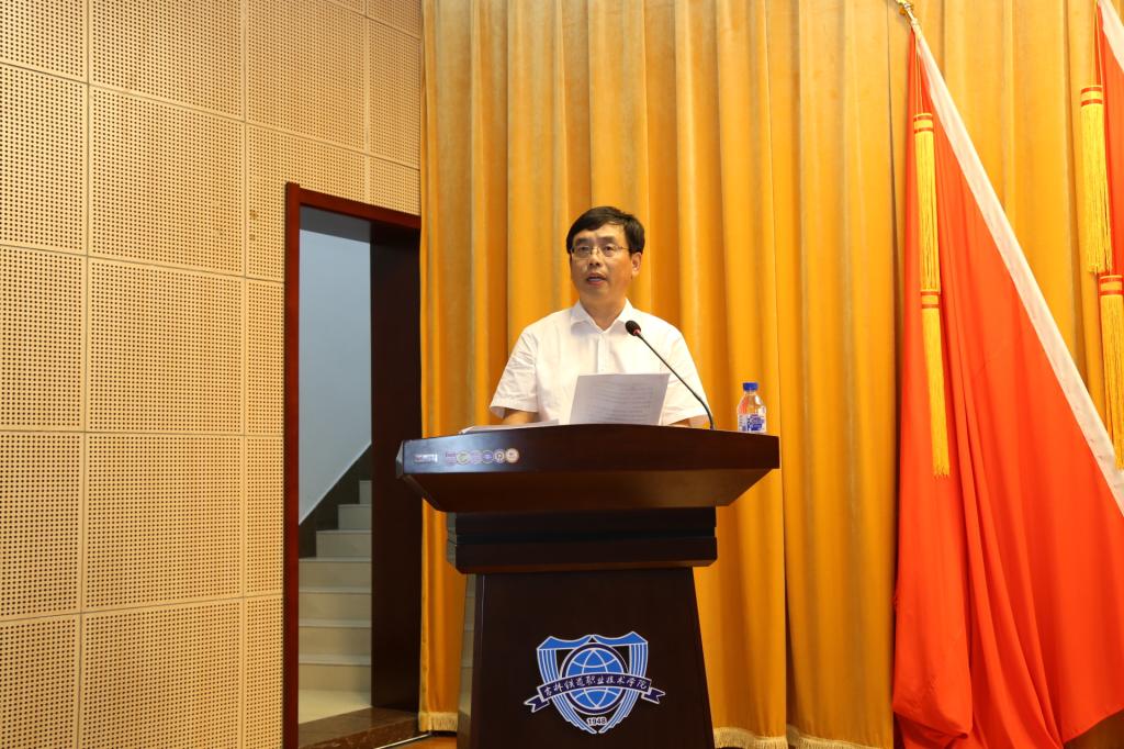 曹炳志在讲话中代表学校向辛勤工作、无私奉献的全体教职工和离退休老教师,致以节日的问候和崇高的敬意!向受到表彰的先进集体和优秀个人表示热烈的祝贺!他指出今年教师节,时点特殊、意义重大:我们即将迎来祖国70华诞。他号召全体教师必须不忘初心、牢记使命,精神再洗礼、奋进再出发。他总结指出,在学校党委的坚强带领和全体教职工的共同努力下,学校上半年取得了“十个历史性突破”:一是学校被评选为国家优质校;二是学校被省教育厅确定为国家“特高计划”推荐校;三是学校铁道机车、铁道供电技术、铁道工程技术、城市轨道交通运营管理四个专业被教育部评为国家骨干专业;四是学校轨道运营类“双师型”教师培养培训基地被教育部认定为“双师型”教师培养培训基地;五是莫建国技能大师工作室被教育部认定为国家技能大师工作室;六是学校汽车检测与维修专业被教育部确定为全国首批1+X证书制度试点院校;七是学校第二次成功承办全国轨道交通类专业学生职业技能大赛,取得一等奖第一名的好成绩;八是学校有两名教师被评为吉林省第十五届突出贡献专家;九是莫建国老师被省委宣传部、教育厅评为吉林省“2019吉林好人·最美教师暨黄大年式好老师”;十是获得2019一带一路暨金砖国家技能发展与技术创新大赛即“嘉克杯”国际焊接技能大赛个人一等奖、三等奖和优胜奖及团体铜奖的好成绩。