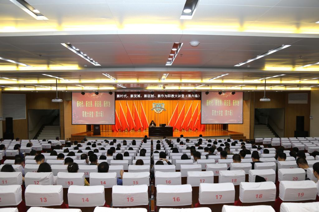 8月30日,学校在图书馆报告厅举办第六场“新时代、新发展、新征程、新作为”(四新)职教大讲堂。学校党委副书记、校长曹炳志,副校长田雷,纪委书记苏春年,副校长李欣,麦可思数据(北京)有限公司副总裁武艳丽以及全校教师,机关教辅全体人员,后勤副科以上干部参加了专题报告会。报告会分别由教务处处长张辉,质量监控处处长郝延春主持