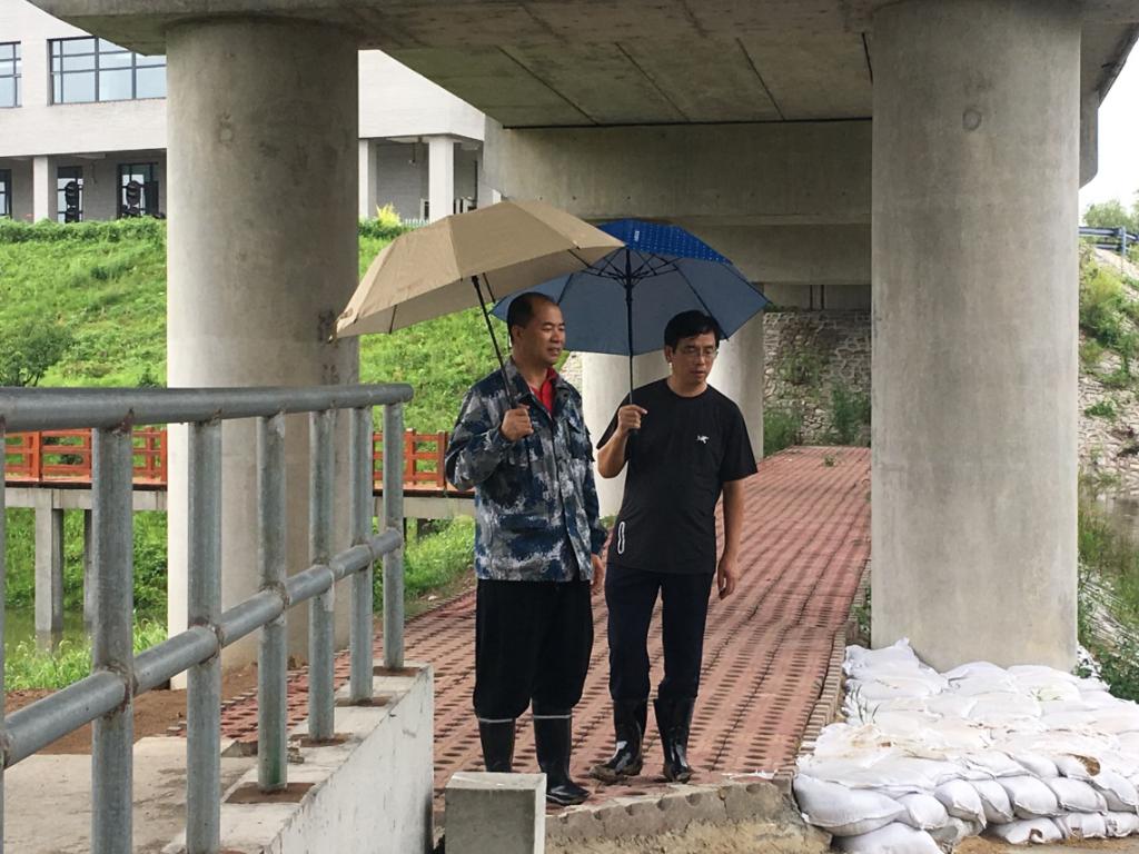检查指导中,曹炳志、田雷一行慰问了值班同志,查看了西侧汇水湖。尽管汇水湖坝体安全,泄洪水道正常泄水,两位领导还是要求对坝体一处低洼地段进行加高、加厚,保证该坝体的绝对安全。曹炳志亲自下到实训站场排水渠检查排水情况,在检查景观湖坝体时,曹炳志、田雷一行探讨了加高水坝高度增加蓄水量的可行性方案,并要求基建科进行研讨。