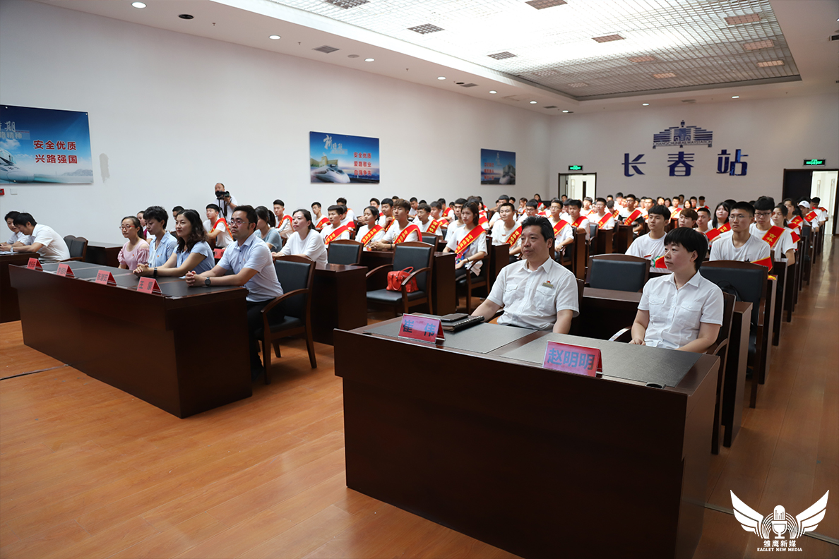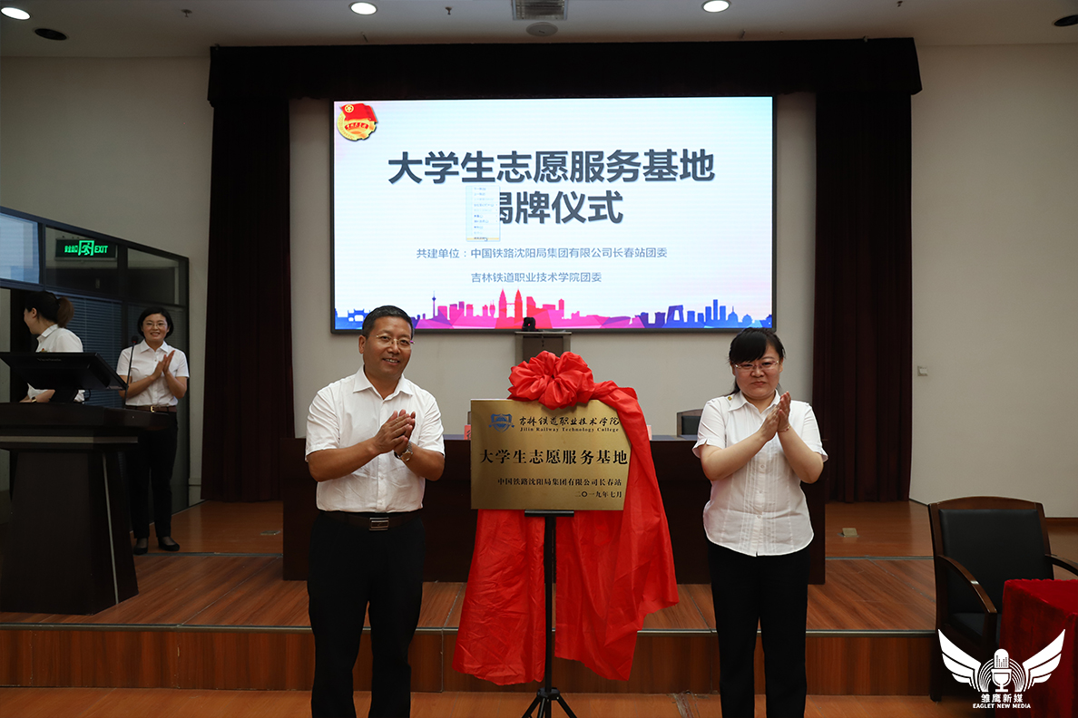 为深入学习宣传贯彻党的十九大精神和习近平新时代中国特色社会主义思想,引导广大青年学生在志愿实践中受教育、长才干、做贡献,校团委与长春火车站团委一起共同创建了大学生志愿服务基地。7月19日,基地揭牌仪式在长春火车站举行。校党委副书记徐彤宝、中国铁路沈阳局集团有限公司长春站党委副书记周学军出席会议,校团委书记于威、长春站客收科科长崔伟、长春站教育科工程师赵明明、长春站售票车间党支部书记孙鹏、长春站客运车间党总支副书记张严、铁道运输学院团委副书记黄乐乐、铁道信号学院团委书记李佰玲、铁道工程学院团委副书记张慧茹、铁道机车学院团委副书记王蒙、铁道车辆学院团委副书记孙旭、校团委干事陈思,以及2019年长春站暑期志愿服务队的全体同学参加了本次活动。长春站团委书记纪兵主持仪式。