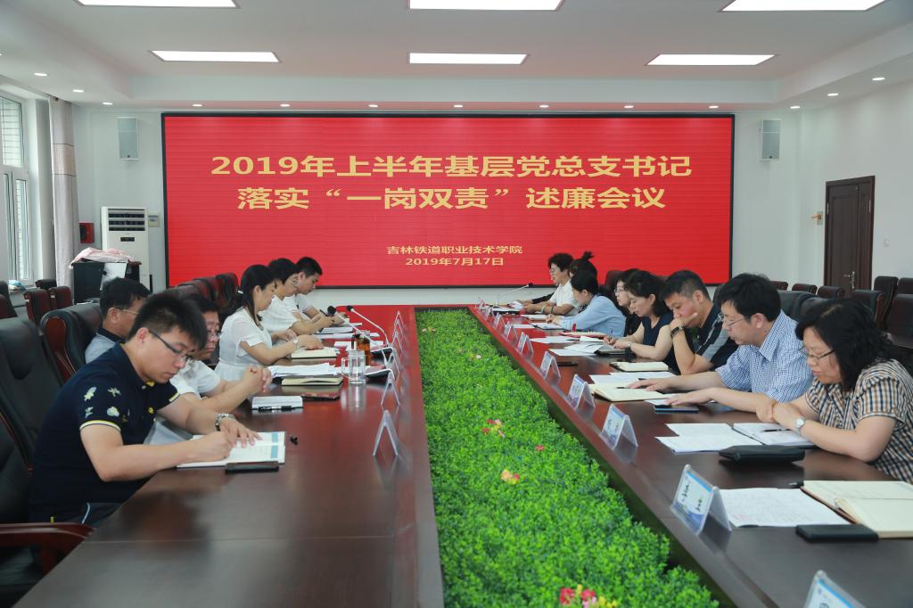 7月17日,学校2019年上半年基层党总支书记落实“一岗双责”述廉会议在办公楼第二会议室召开。党委书记胡越平、纪委书记苏春年、纪委委员以及各基层党总支书记参加会议。会议由纪检监察处处长侯占峰主持。