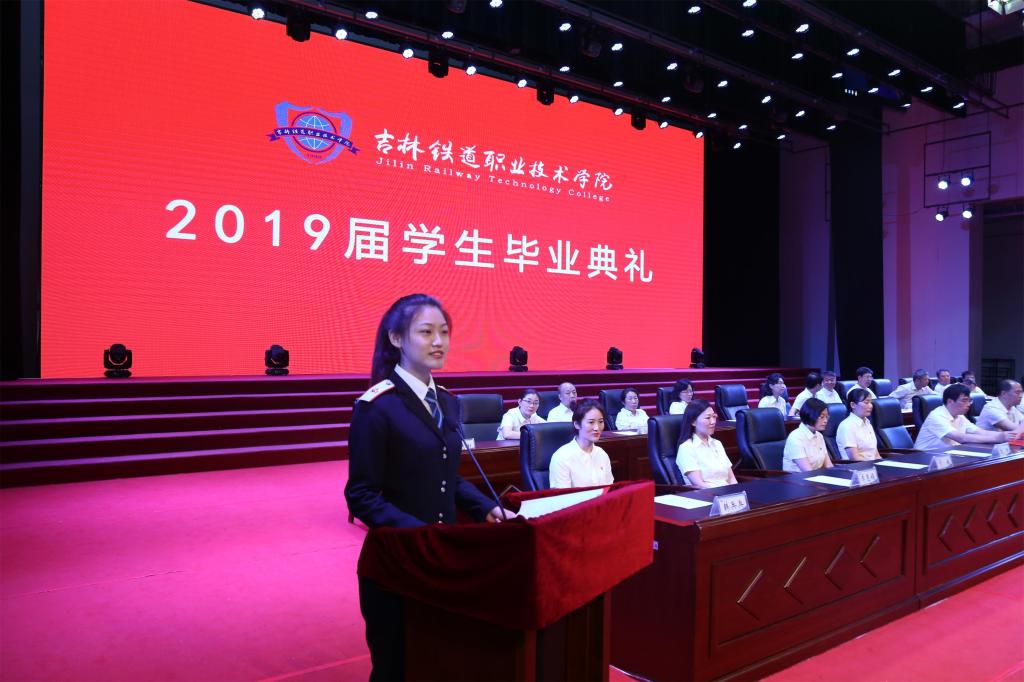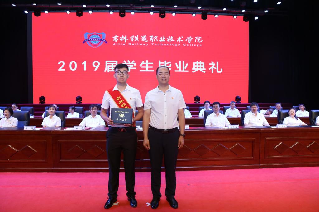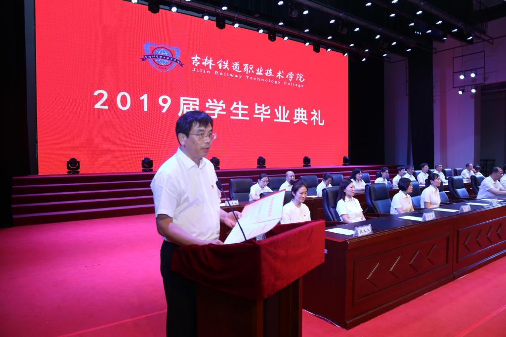 毕业典礼上,田雷宣读了《吉林铁道职业技术学院准予毕业决定》、《吉林铁道职业技术学院优秀毕业生表彰决定》和《吉林铁道职业技术学院聘任毕业生担任校友联络员的决定》。学校领导分别为毕业生代表、优秀毕业生代表颁发证书,为校友联络员颁发聘书和校友卡,全场报以热烈的掌声。