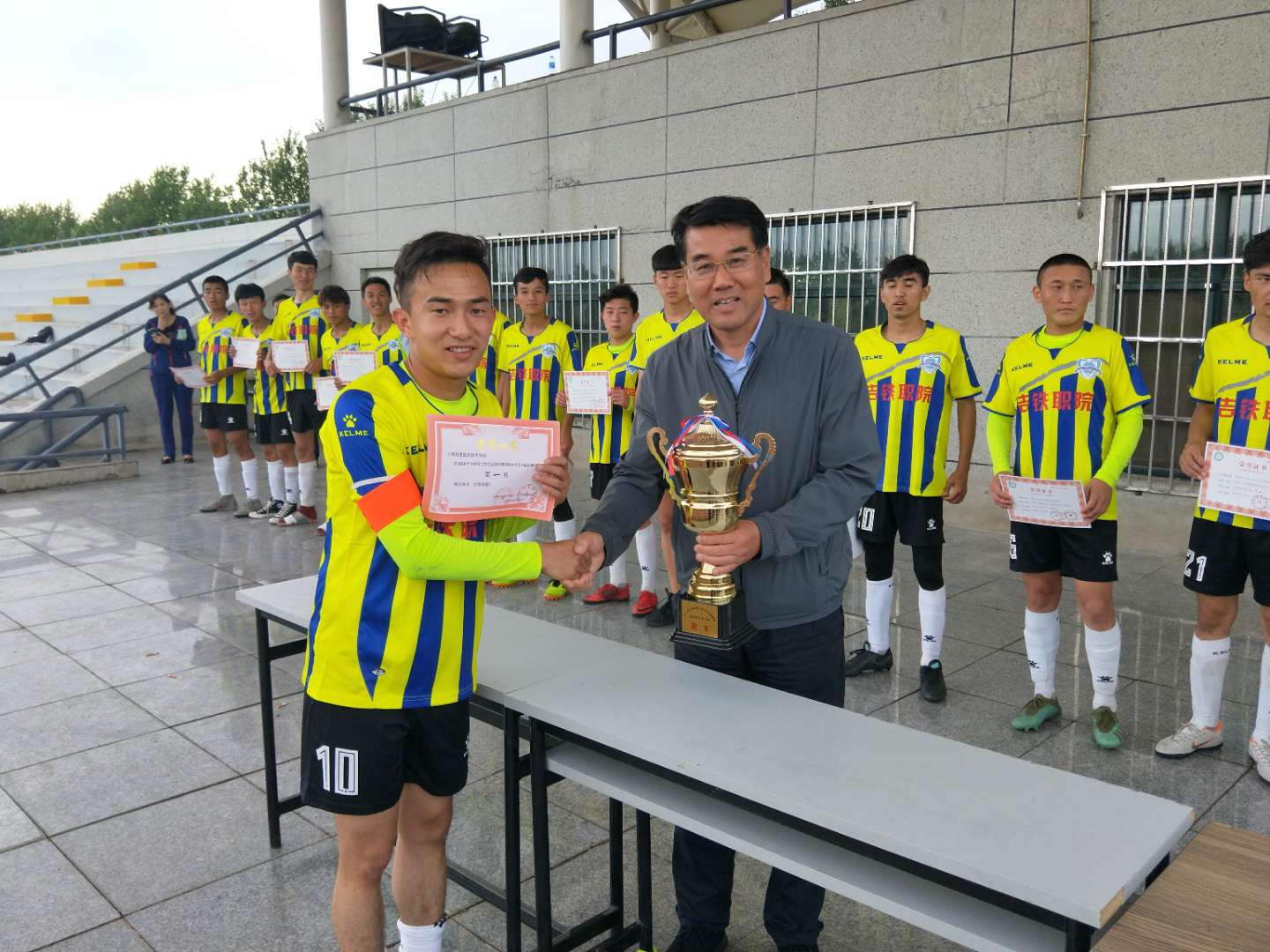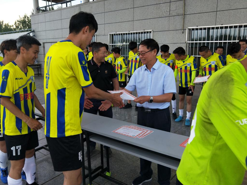 | 党委书记胡越平为球队颁发奖杯 |