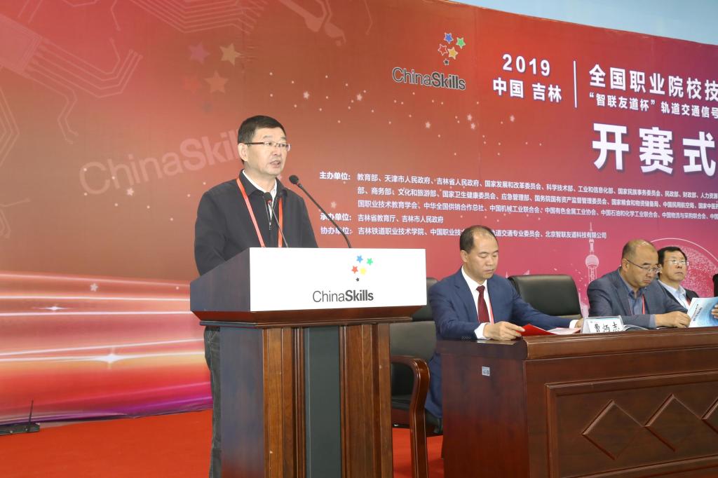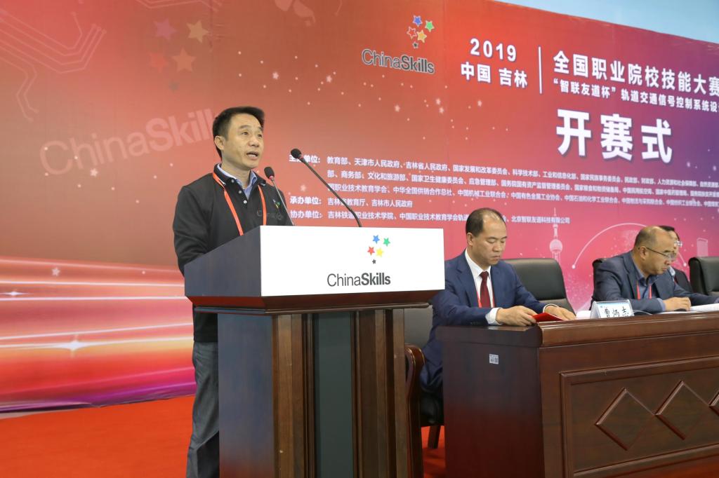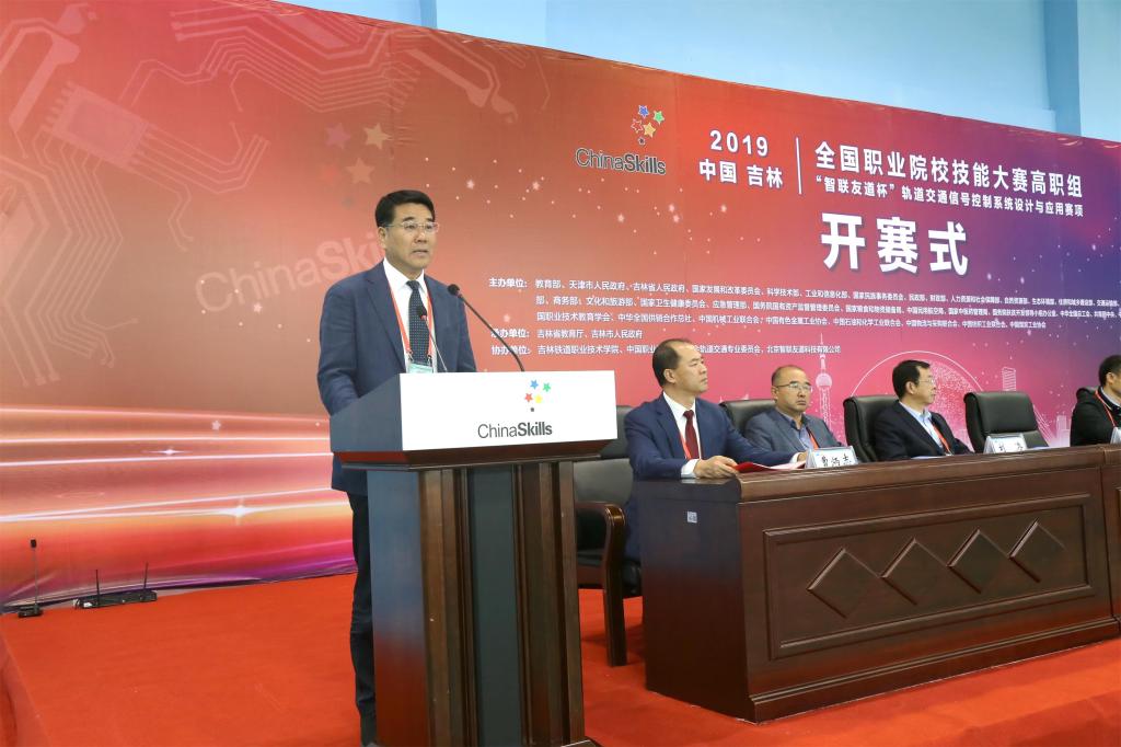 吉林省教育厅巡视员、副厅长战高峰同志发表讲话并宣布大赛开幕。在讲话中,他指出,全国职业院校技能大赛是我国职业教育的一项重大制度设计和创新。作为我国职业教育领域的顶级赛事,大赛有力促进了职业教育产教融合、校企合作,引领了专业建设和教学改革,推动了区域职业教育协调发展,展现了职业教育改革创新成果,成为强化技术技能培养、提高职业教育质量的有力抓手。不少选手在获奖的同时,也收到了企业抛来的橄榄枝,走上了事业发展的快车道;而更多的职业院校学生,通过大赛磨练了技能、增长了本领,为走上工作岗位奠定了扎实基础;大批的职业院校教师,也通过大赛,提升了实践教学能力。他表示,吉铁院再次承办大赛,体现了教育部、全国职业院校技能大赛组委会对吉林职业教育发展和吉铁院大赛承办能力的充分认可,对我省进一步推动职业教育改革发展也是一次很好的机遇。