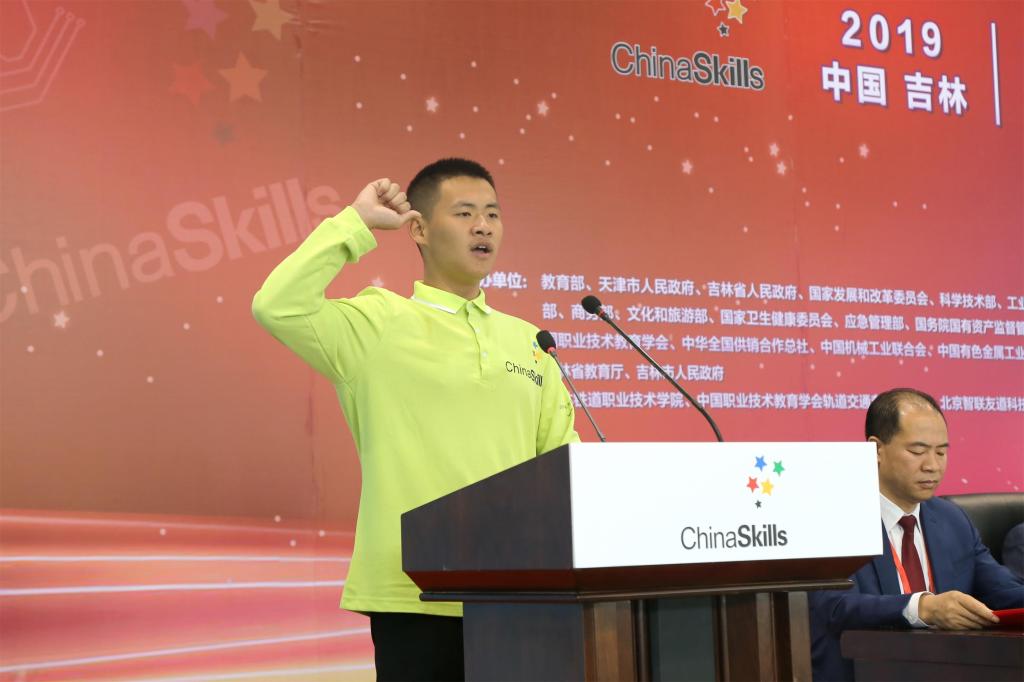 | 吉林铁道职业技术学院刘柏岐同学代表全体参赛选手宣誓 |