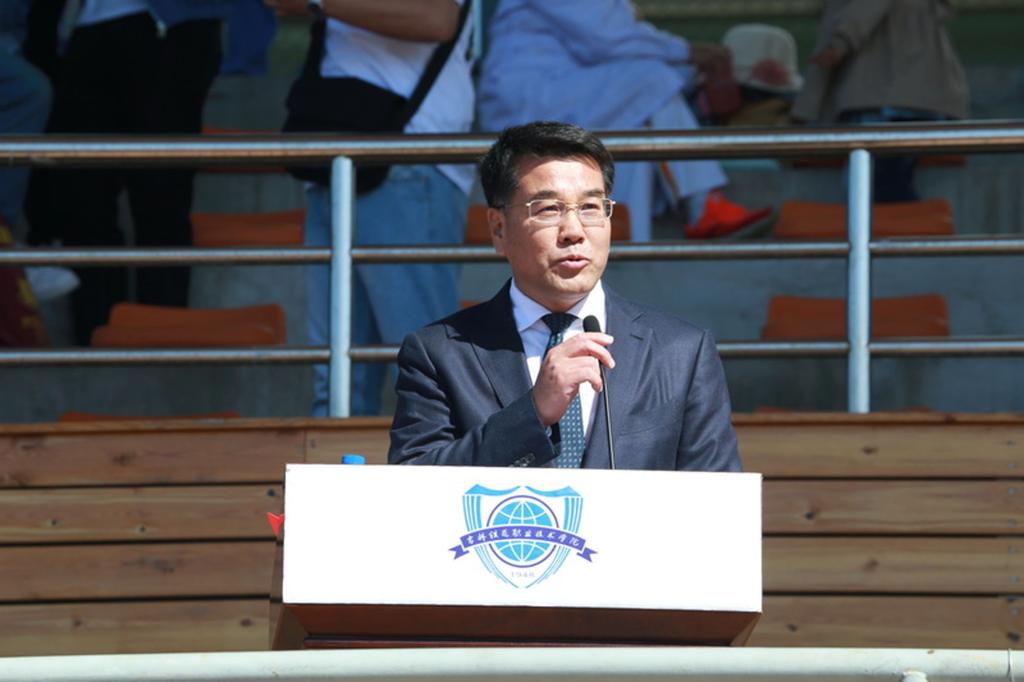 他强调,要深入贯彻落实习近平总书记关于体育工作的重要指示精神,行动起来、运动起来,将体育竞技的“夺标”精神,转化为落实“职教20条”的改革精神,转化为推动学校党建三项工程的建设精神。广大教职工要将自我向上的拼搏之力,汇集成推动学校新一轮振兴发展的磅礴合力,全体同学要将锻炼身体的自发,升华为德智体美劳全面发展的自觉,向着成为具有吉铁院特质学生,成为“两职两高”人才的目标而努力,在习近平新时代中国特色社会主义思想的指引下,齐心协力,奋勇前进,以优异的成绩向祖国七十华诞献礼!