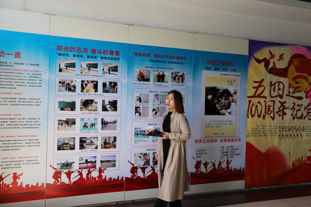 为弘扬五四精神,积极开展好纪念五四运动100周年宣传教育活动,加强环境育人实效,激励和引领广大青年大力弘扬以爱国主义为核心的伟大民族精神。5月23日,团委组织开展了“传承五四精神,竞展雏鹰风采”宣传展板评比活动,党委副书记徐彤宝出席活动,学生处处长李原福、团委书记于威、学生处副处长刘佳佳,各学院党总支书记、团委书记参加了本次活动。