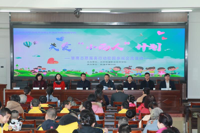 为号召社会各界关注特殊儿童,为他们提供力所能及的帮助,诠释彰显新时代青年大学生的志愿服务精神,承担社会责任,提升新时代大学生社会形象,在4月2日世界自闭症日当天,学院铁道车辆分院邀请丰满区特殊教育学校的全体师生和家长来到学院进行参观交流。学院党委书记胡越平,党委副书记徐彤宝,丰满区特殊教育学校党支部书记、校长韩颖同志,党支部副书记丛淑艳等领导出席活动,80余名丰满特殊教育学校师生和家长,来自铁道车辆分院的师生志愿者等参加了活动。