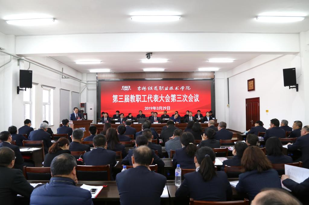 在全院上下深入学习贯彻习近平新时代中国特色社会主义思想和党的“十九大”精神,加快学院新一轮振兴发展,学院第三届教职工代表大会第三次会议于2019年3月29日胜利召开。学院党委领导班子出席会议,全院88名教职工代表参加了会议。大会预备会议由副院长李欣同志主持,第一次全体会议由党委副书记徐彤宝同志主持,第二次全体会议由副院长田雷同志主持。