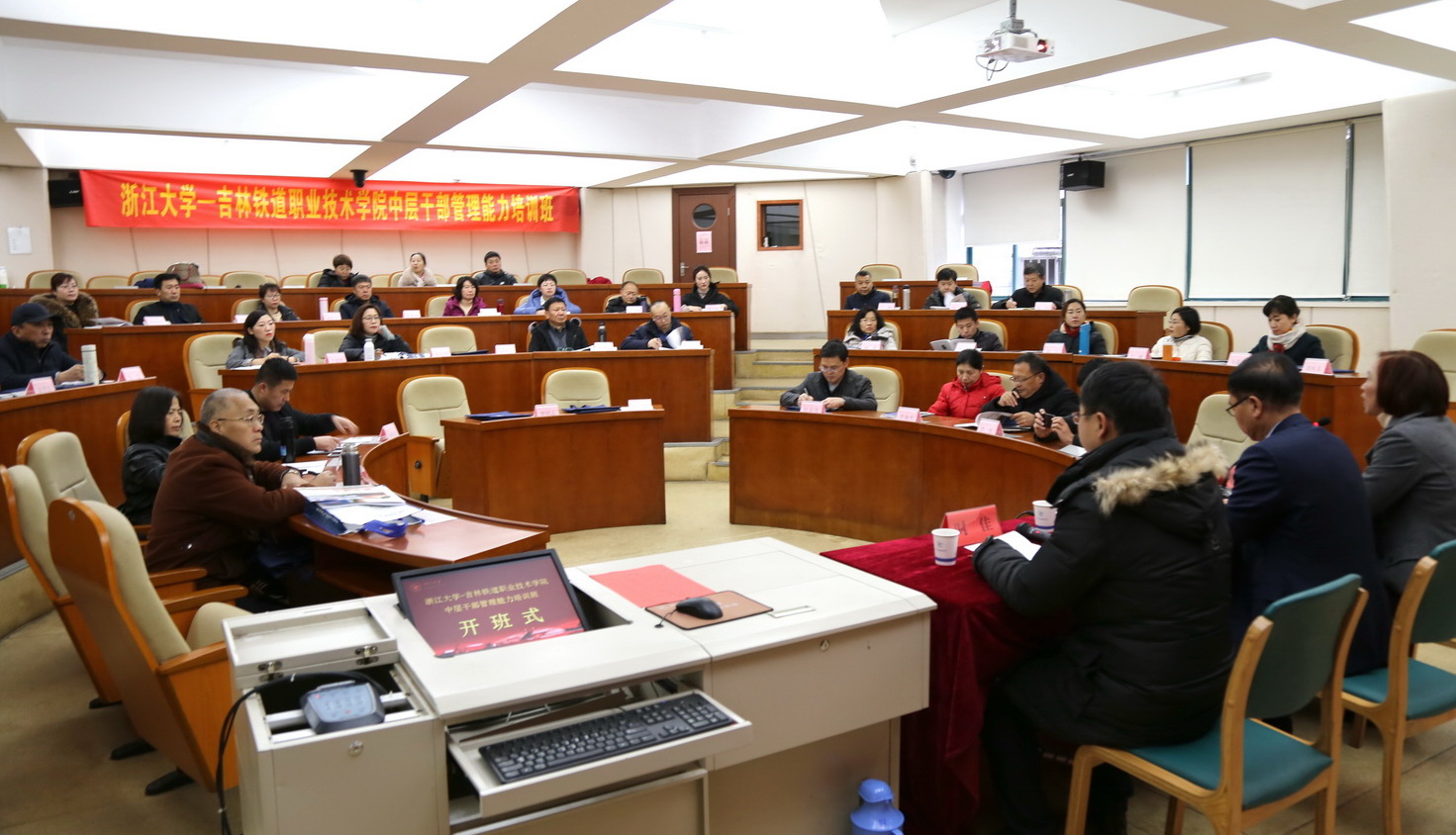 之后,学院王华副院长进行了讲话。他首先代表学院向负责筹办本次浙大干部培训班付出辛勤劳动的浙大继续教育学院培训部嵇建琴主任,以及负责本次培训项目的时佳主任、班主