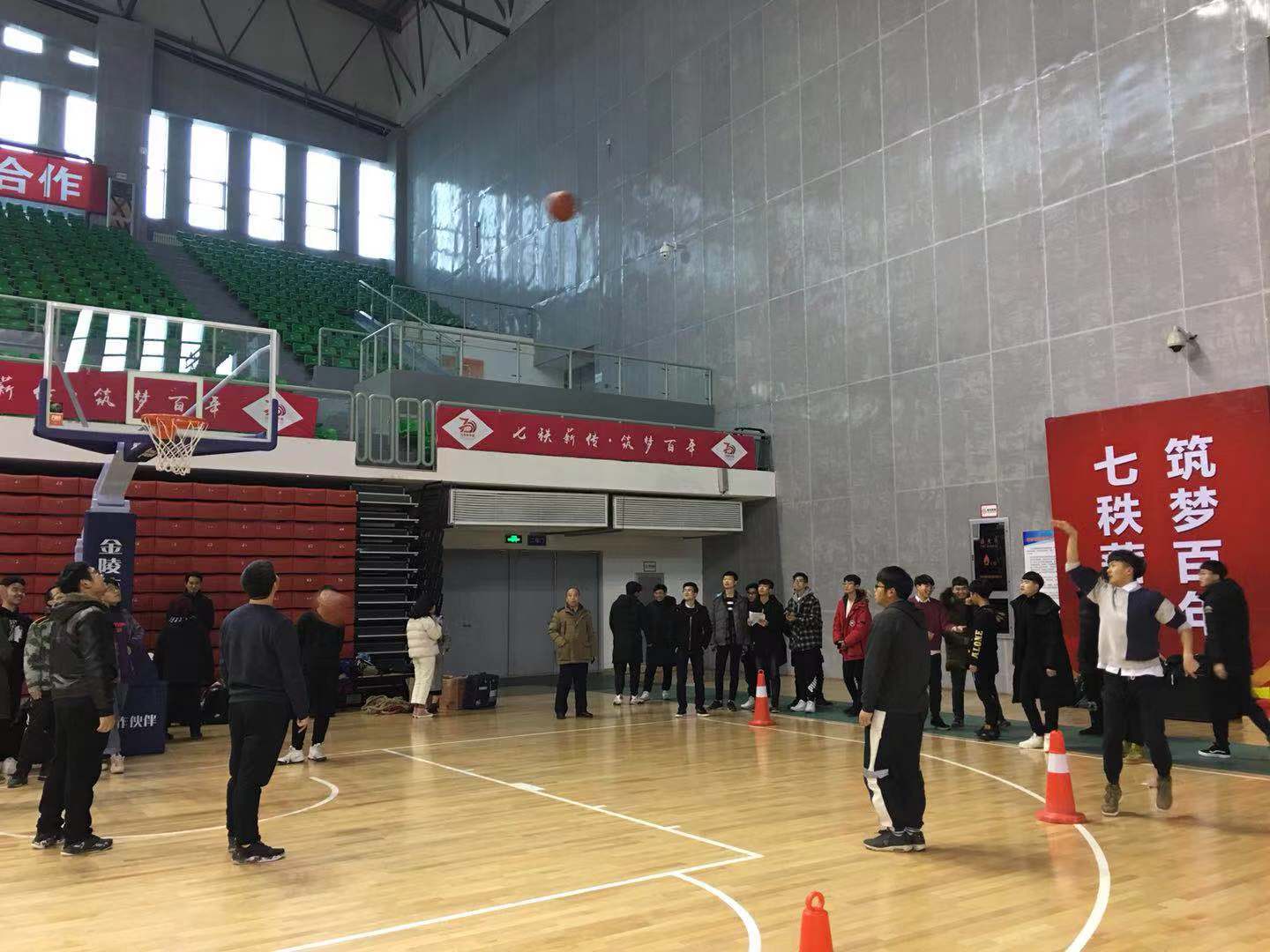 拓展游戏在学院大学生活动中心举行。活动进行了三分王定点投篮比赛、拔河比赛等项目,学生们积极主动,勇于挑战,杭州地铁运营分公司助理张思豪也参与其中,辅导员邢东旭老师和李振老师为同学们呐喊助威,同学们热情高涨,竞争激烈。赛后,杭州地铁运营分公司工程师陈伟和分院长马建华教授为获奖学生颁发了奖品。