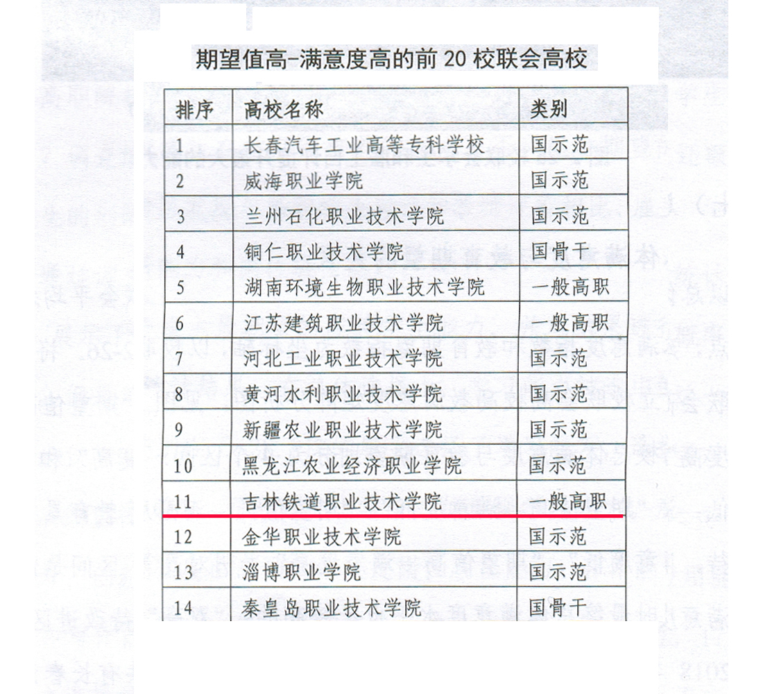 ⑧期望值高-满意度高的前20校联会高校 吉林铁道职业技术学院名列第十一