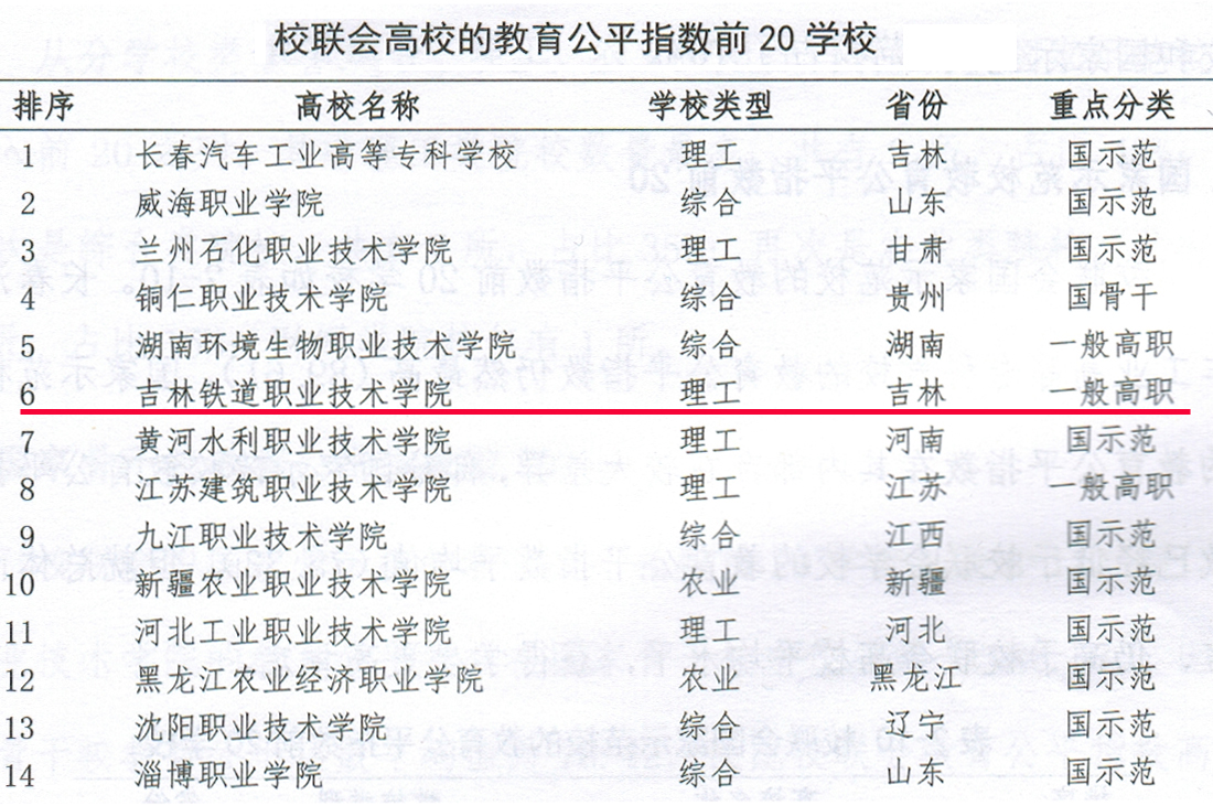 ④校联会高校教育公平指数 吉林铁道职业技术学院名列第六