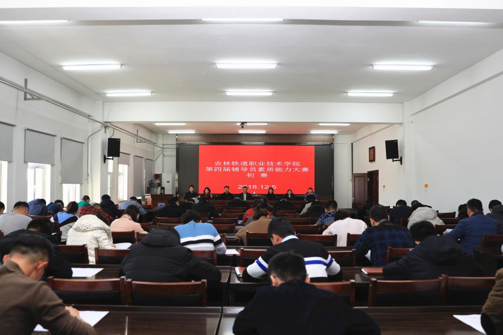 2018年12月5日下午,学院在行政楼第三会议室举办第四届辅导员素质能力大赛初赛。根据《关于举办吉林铁道职业技术学院第四届辅导员素质能力大赛的通知》(吉铁职院党发[2018]90号)文件要求,全院各分院学办主任、团委书记、全体专兼职辅导员共计55人参加了本次初赛。各分院党总支书记、学生处处长、副处长对本次比赛进行监督。