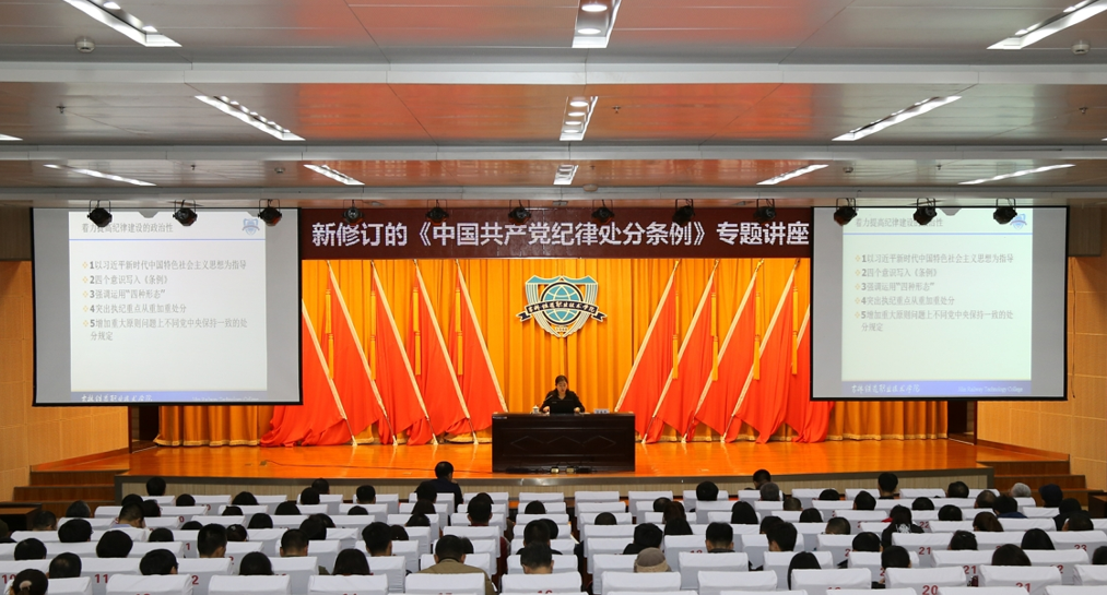 为深入学习宣传贯彻新修订的《中国共产党纪律处分条例》,进一步加强学院党风廉政建设和反腐败工作,切实提高党员干部的纪律意识和规矩意识,学院纪委书记苏春年于11月9日在图书馆报告厅为党员干部作了题为“学纪、明纪、守纪——学习《纪律处分条例》”的专题讲座。