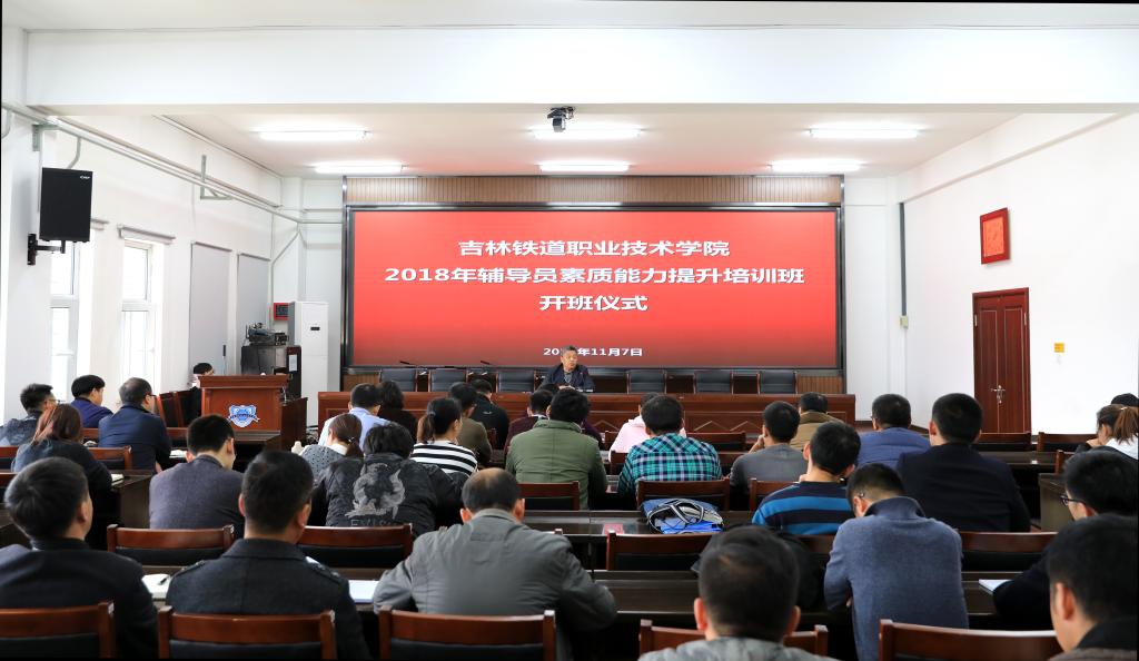 2018年11月7日下午,在学院行政办公楼第三会议室举行了吉林铁道职业技术学院2018年辅导员素质能力提升培训班开班式。学生处处长刘树全及学生处全体人员、各分院党总支书记、学生工作办公室主任、全体辅导员参加了开班式。开班式由学生处副处长张鑫主持。