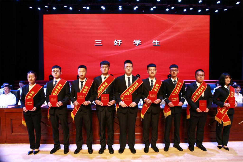 | 受表彰的三好学生代表领奖 |