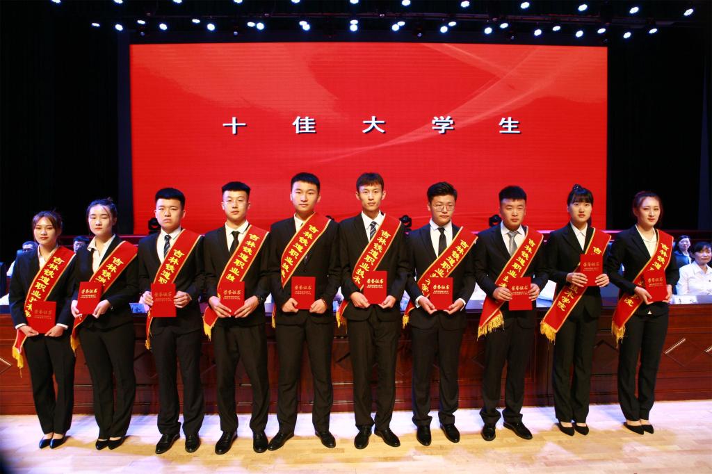 | 受表彰的十佳大学生领奖 |
