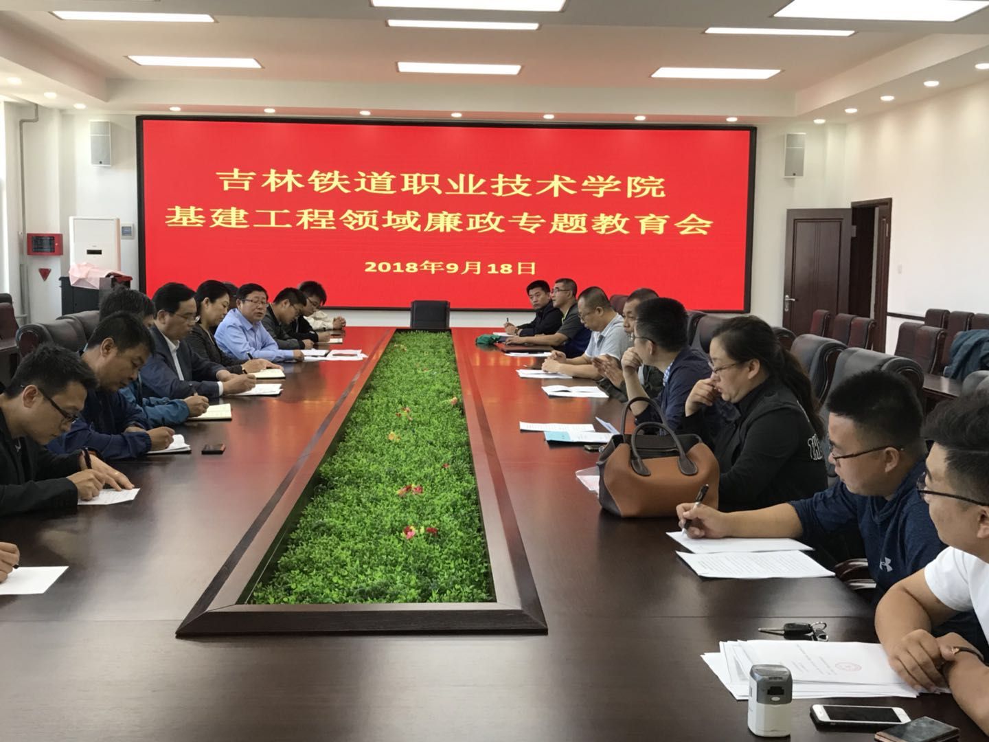 会上,乙方负责人分别介绍了所承包的工程项目及进展情况,并作了表态发言,同时签订了《吉林铁道职业技术学院基建项目乙方廉洁自律承诺书》。纪检监察处处长侯占峰对甲乙双方提出廉洁纪律要求,明确了底线和红线。接着,副院长田雷对甲乙双方提出三点要求,他指出,甲乙双方在签订合同前相关职能部门要做好资质审查工作,签订合同后,施工单位要履行好合同条款和学院的有关要求,要做到依法、依规、依序。二是要严格管理、精心组织。后勤基建部门要做好工程立项工作,施工单位要精心组织施工,确保工程质量规范。三是甲乙双方要相互配合,更要严格按照国家相关规定,做到廉洁自律。