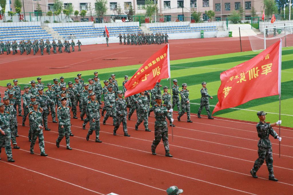 在庄严的国歌声中,五星红旗徐徐升起,所有人起立高唱国歌,行注目礼。升国旗结束后,军训成果汇报正式开始,在迎军旗仪式后,在军训指挥官工程防化78旅朱永胜上尉的陪同下,曹炳志院长对全体军训营连开始检阅,各营连以铿锵有力的口号回应检阅首长的问候,体现出全体军训大学生斗志昂扬的精神风貌。随即,在标兵就位后,在雄壮的解放军进行曲中开始分列式,全体军训新生九个营,共计44个连,以整齐的步伐,饱满的精神,响亮的口号依次经过主席台接受全体领导的检阅。分列式结束后,所有标兵撤回,由600人组成的方阵进行了军体拳表演,严格划一的纪律,整齐有力的动作,流畅变化的阵型,给所有人留下了深刻印象。随后,大学生后备连也进行了队列训练展示,我院的大学生后备连组建以来严格执行军事训练,发挥退役学生优良军事作风,为提高学院学生半军事化定置管理和大学生征兵宣传工作提供了有力保障。