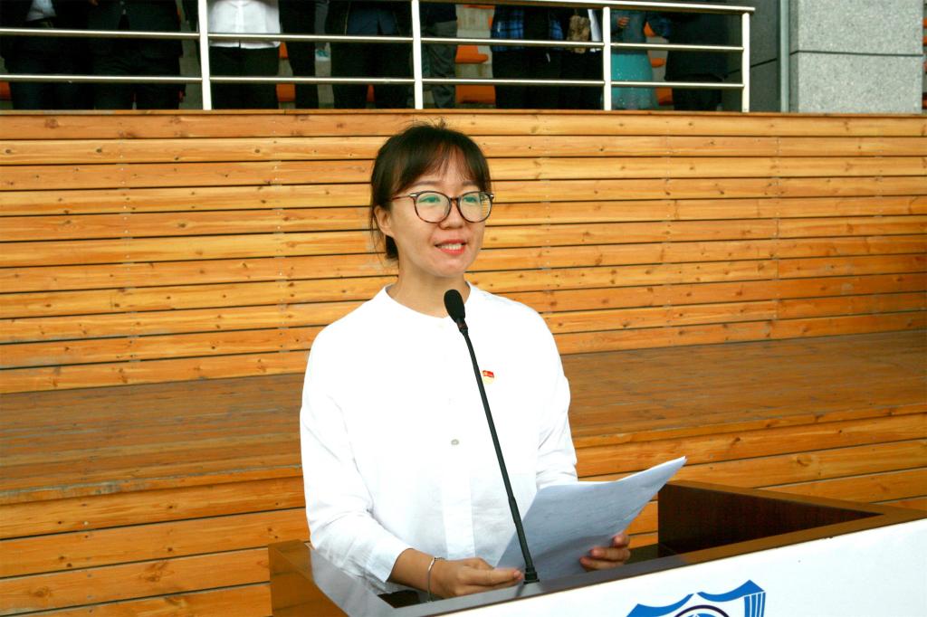 | 学生处副处长、学院武装部副部长刘佳佳宣布军训表彰决定 |