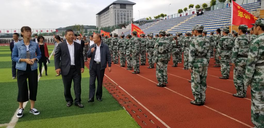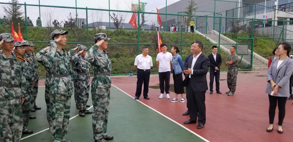 之后,由徐彤宝书记带队分别对军训各营连的训练情况进行检阅,与军训教官及参训新生进行了亲切交谈,对在岗位上辛勤付出的全体教官表示感谢,对参训新生进行慰问与鼓励。并参观了大型军体拳彩排训练。
