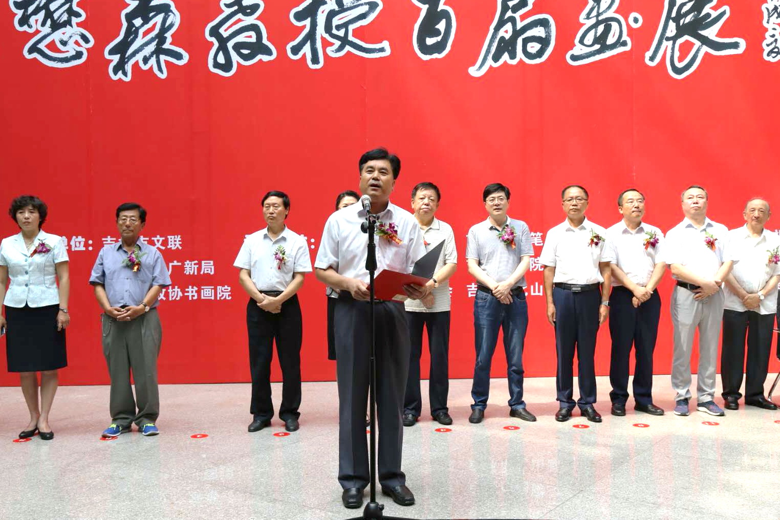 7月31日,由吉林市文联、吉林市广新局、吉林市政协书画院主办的世界教科文卫组织专家成员、世界艺术家协会副会长、学院图书馆原馆长杨懋森教授百扇画展开幕式在吉林市博物馆举行,学院党委书记王喜库、副院长王华应邀出席,王喜库书记在开幕式上致辞。