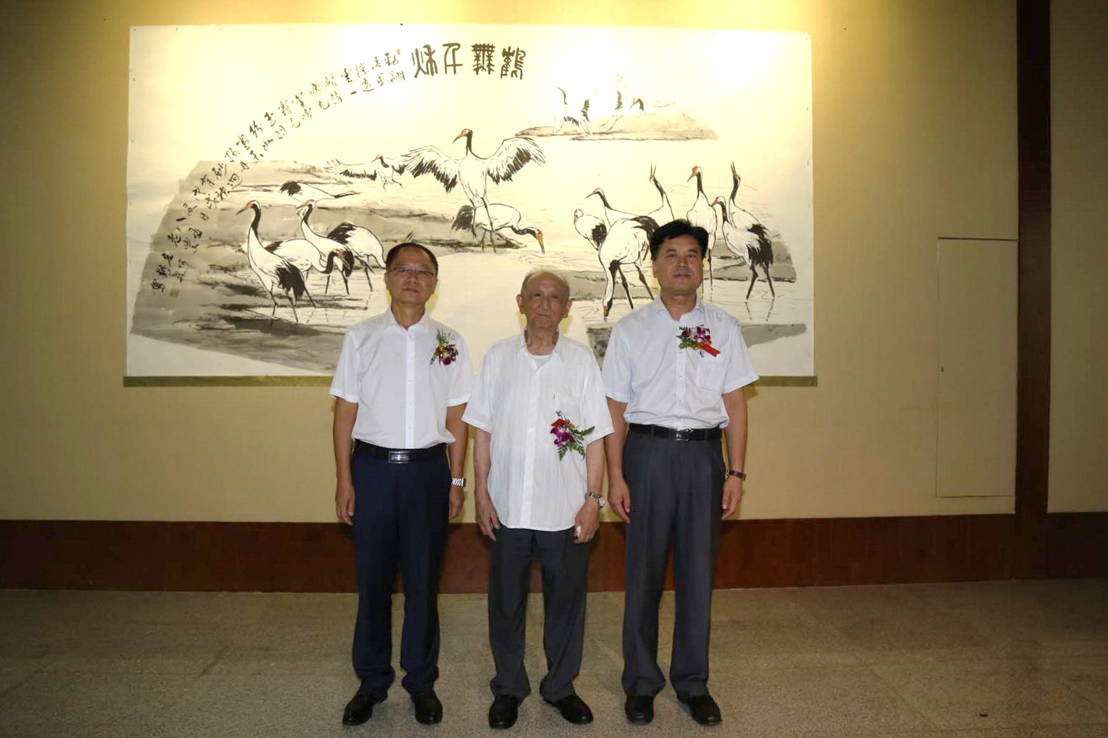 | 杨懋森老先生与学院党委书记王喜库、副院长王华参观画展 |