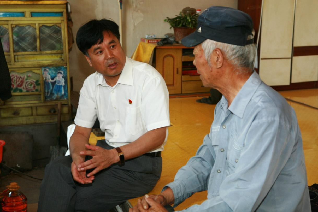 | 学院党委书记王喜库与包保贫困户户侯万财交谈 |