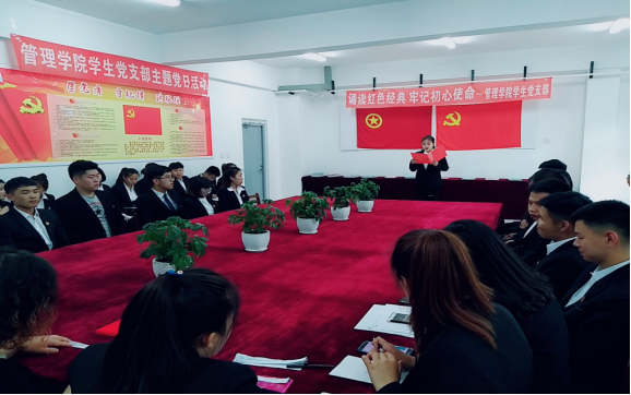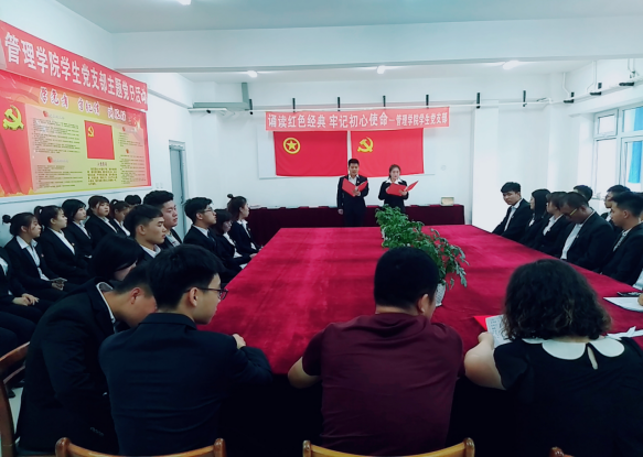 为庆祝中国共产党建党97周年,深入学习宣传贯彻习近平新时代中国特色社会主义思想和党的十九大精神,进一步弘扬中华优秀传统文化,传承红色基因,坚定理想信念,6月13日,管理分院学生党支部带领学生入党发展对象和学生入党积极分子在学生公寓开展以“诵读红色经典牢记初心使命”为主题的红色经典诵读比赛。管理分院党总支副书记李惠娟、学生党支部书记高露、辅导员杨霄、刘丰参加了此次主题党日活动。