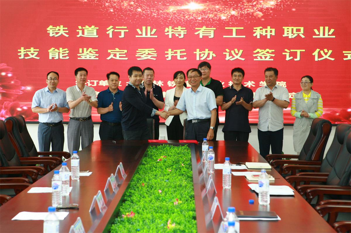 最后,在融洽的气氛下,王华副院长和张东站长签订了《铁道行业特有工种职业技能鉴定委托协议书》。