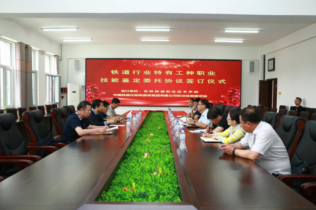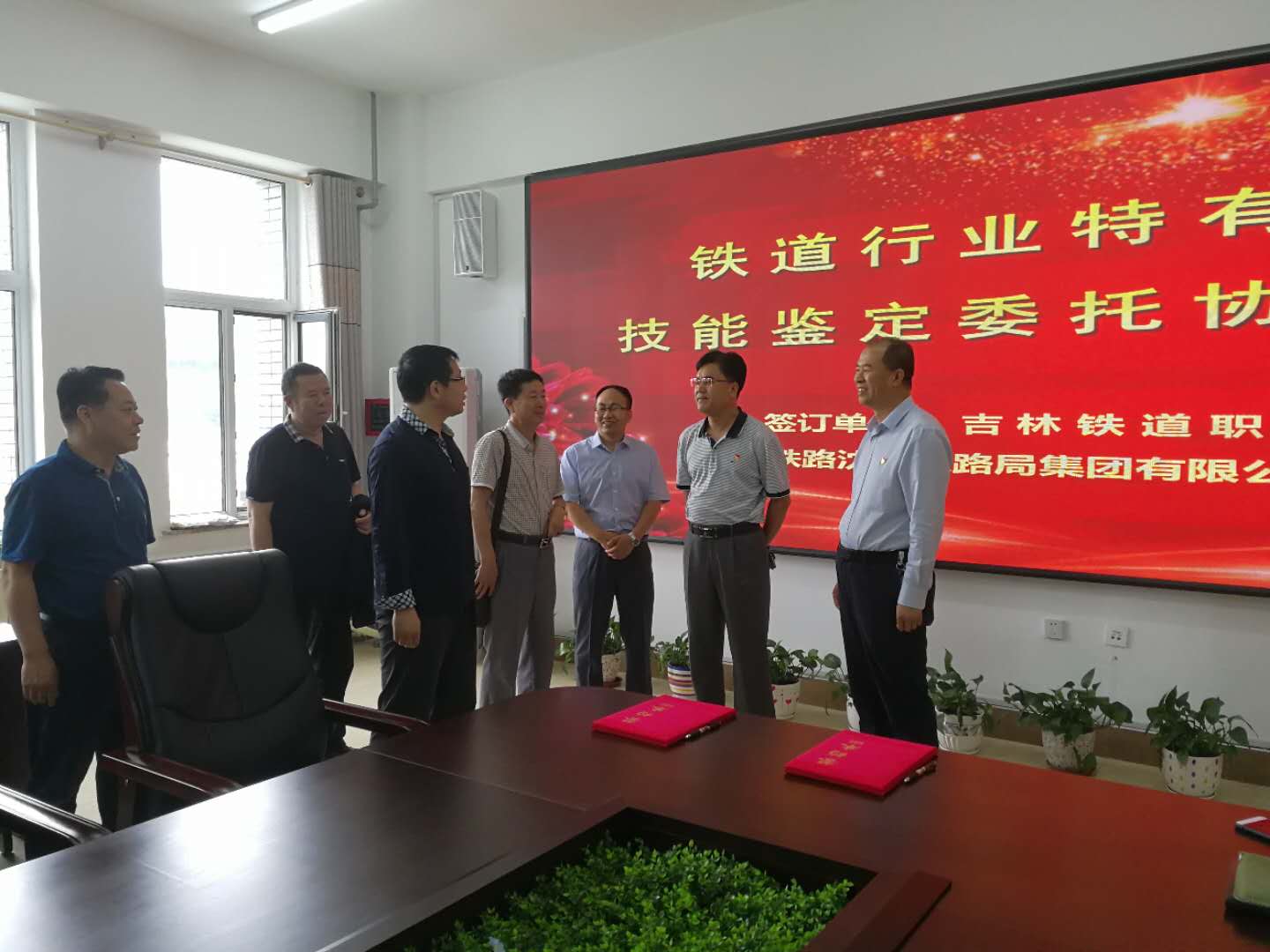 学院领导高度重视此项工作,在签约仪式前,学院党委书记王喜库、院长曹炳志与中国铁路沈阳局集团有限公司职业技能鉴定指导站副站长张东一行进行了亲切交谈。