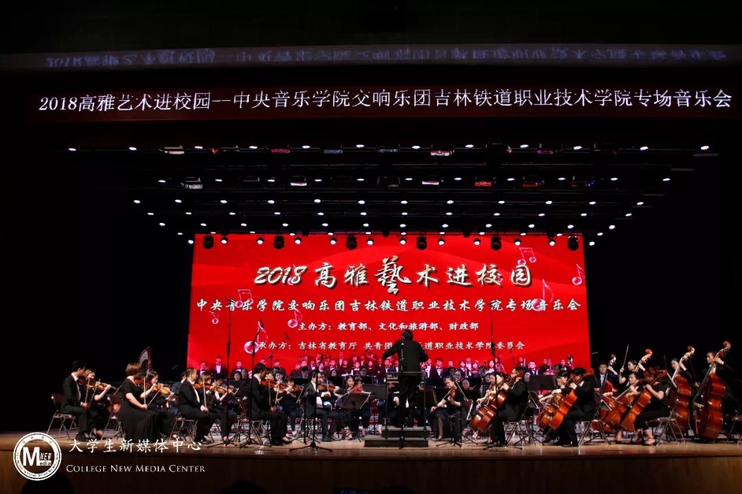 为培养学生良好的审美情趣和艺术素养,引领青年学生树立正确的审美观念,构建精神家园,提升文化自觉,增强文化自信,6月10日,由教育部、文化和旅游部、财政部主办,吉林省教育厅、共青团吉林铁道职业技术学院委员会承办的中央音乐学院2018年高雅艺术进校园吉林铁道职业技术学院专场演出在大学生活动中心成功举行,学院党委书记王喜库、院长曹炳志、副院长王华、党委副书记徐彤宝、副院长田雷、纪委书记苏春年、副院长李欣、永吉县政府代表、吉林工业职业技术学院师生代表、学院优秀毕业生代表以及学院9000余名师生参加了本次活动。