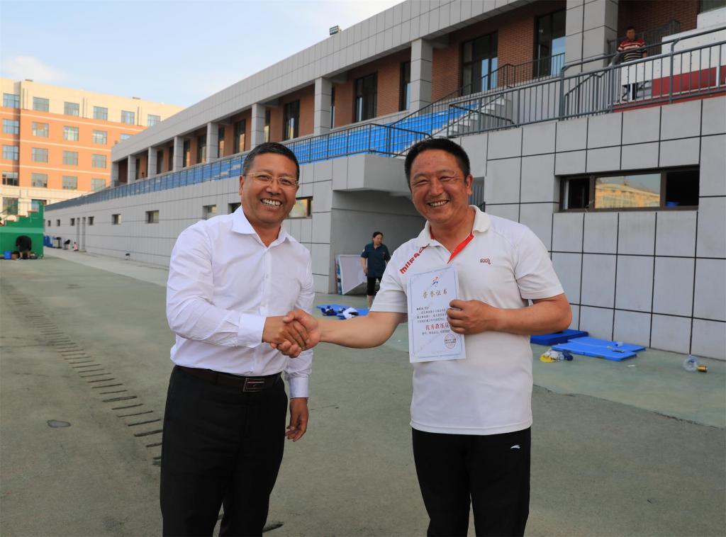 | 学院党委副书记徐彤宝为杨有光老师颁发优秀教练员证书 |