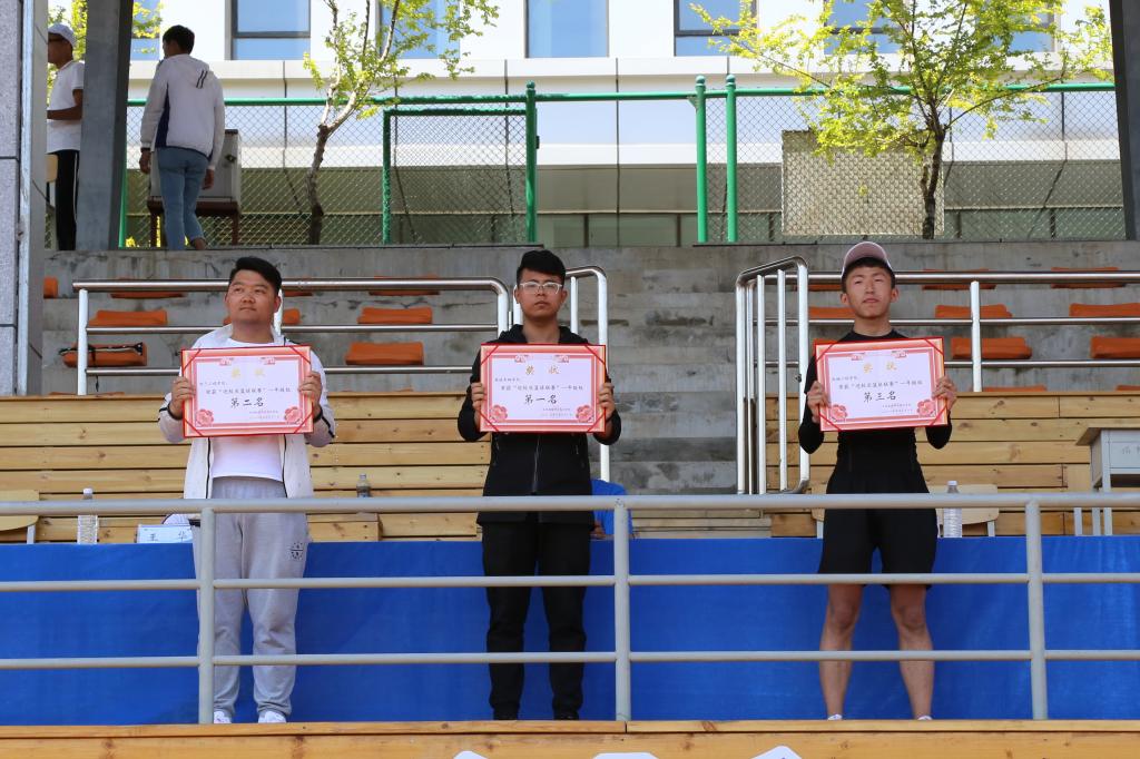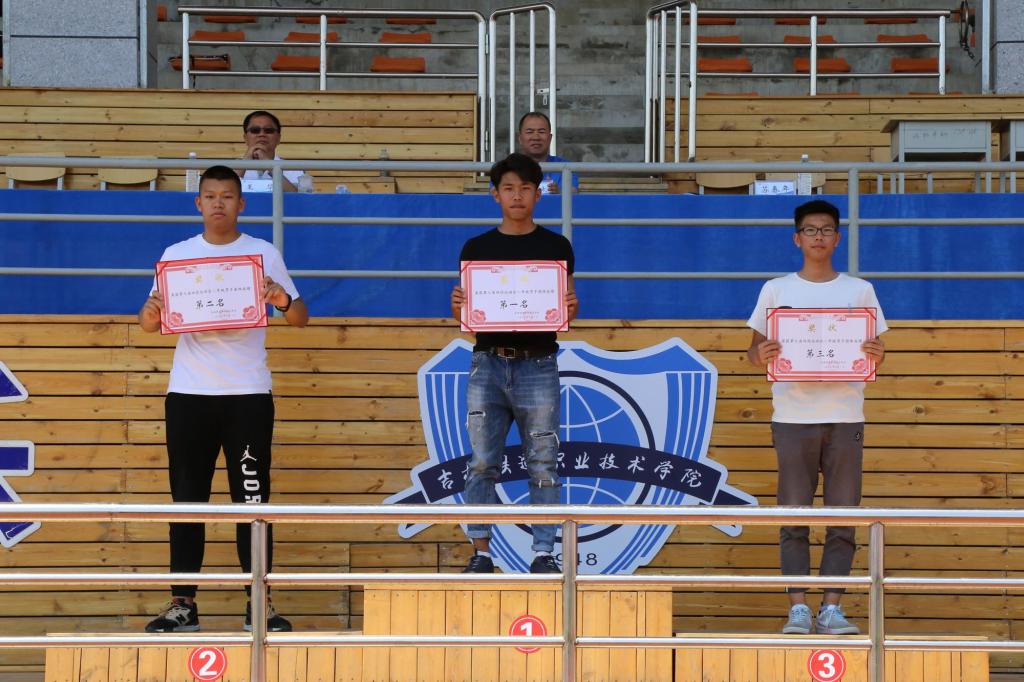 | 第七届田径运动会学生一年级男子团体总分前三名领奖 |